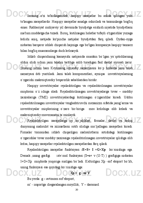 rejalashtirilgan   h amda   h a q i q iy   investitsiyalarning   o`zaro   tengligiga   erishiladi.