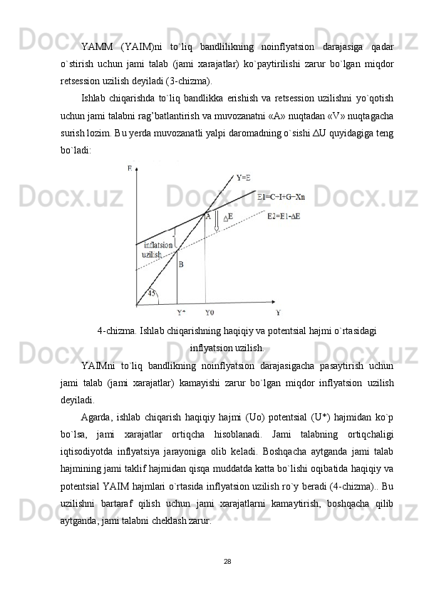 erishiladi.   Aksincha,   haqiqiy   ishlab   chiqarish   (Y2)   uning   muvozanat   darajasidan