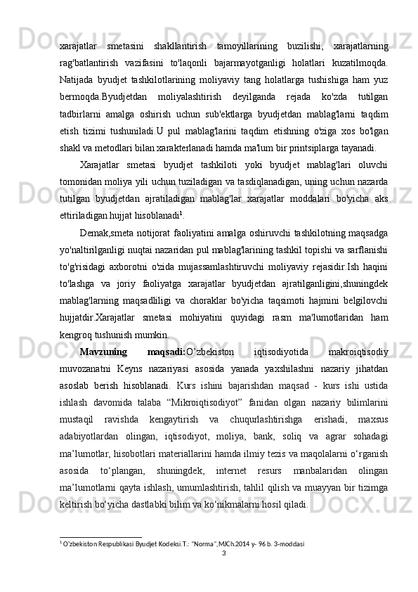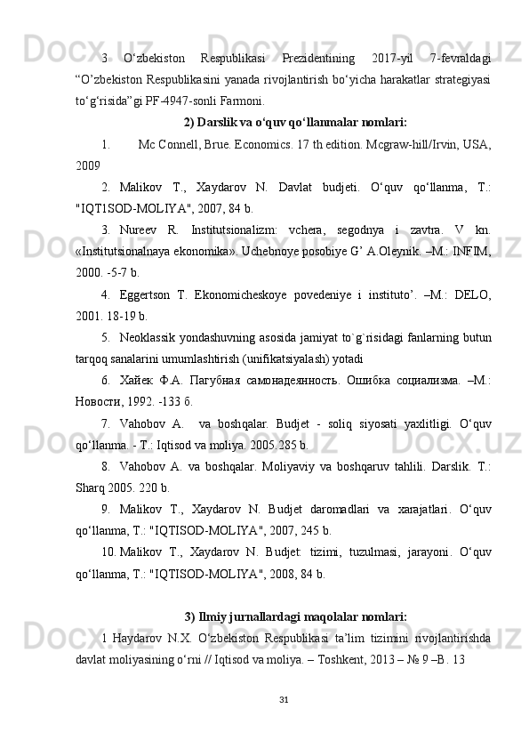 Malikov T., Xaydarov N. Davlat budjeti. O‘quv qo‘llanma, T.: "IQT1SOD-MOLIYA", 2007,