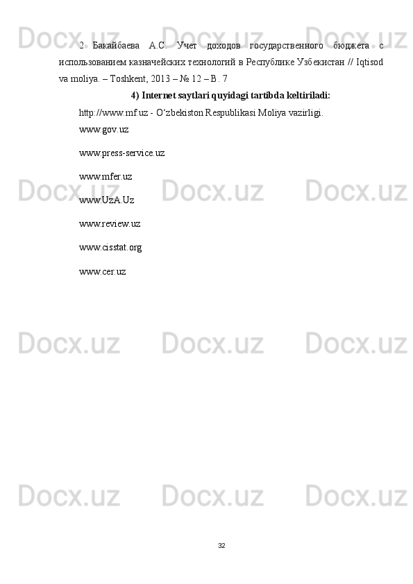 4) Internet saytlari quyidagi tartibda keltiriladi:
