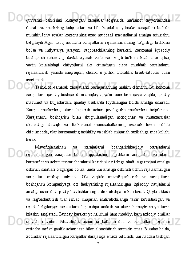 xarajatlar   tartibga   solinadi.   O'z   vaqtida   muvofiqlashtirish   va   xarajatlarni