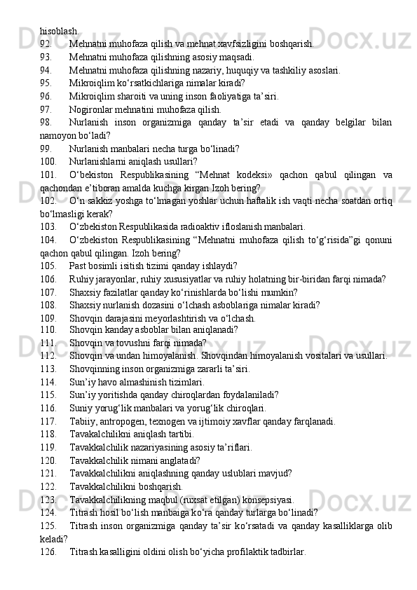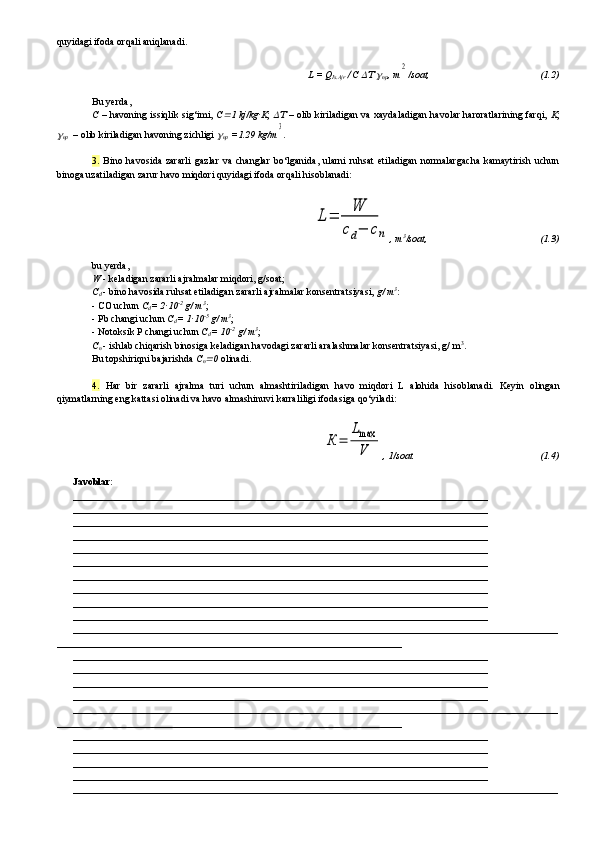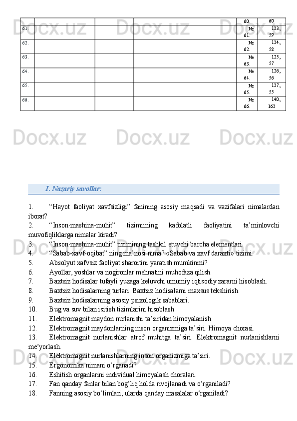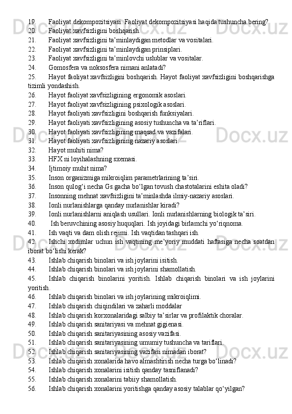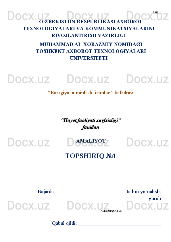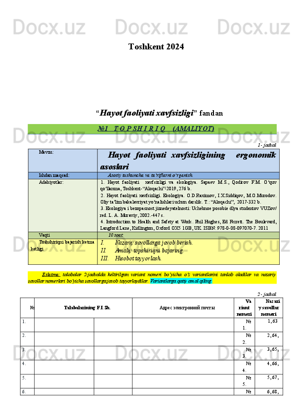Hayot faoliyati xavfsizligi amaliyot topshiriq