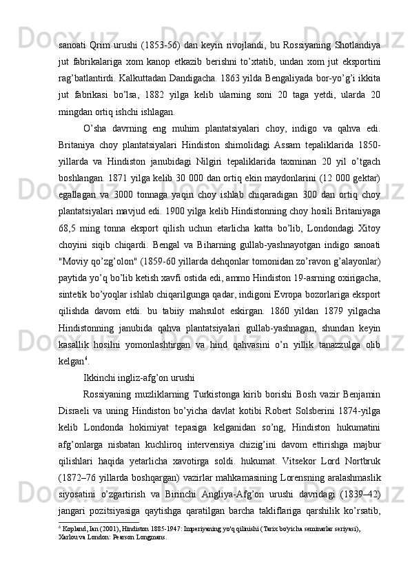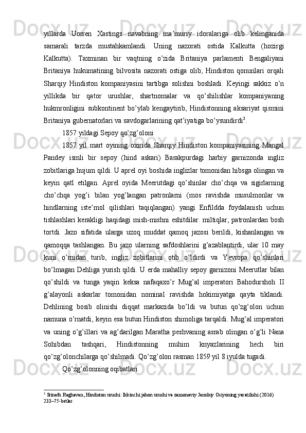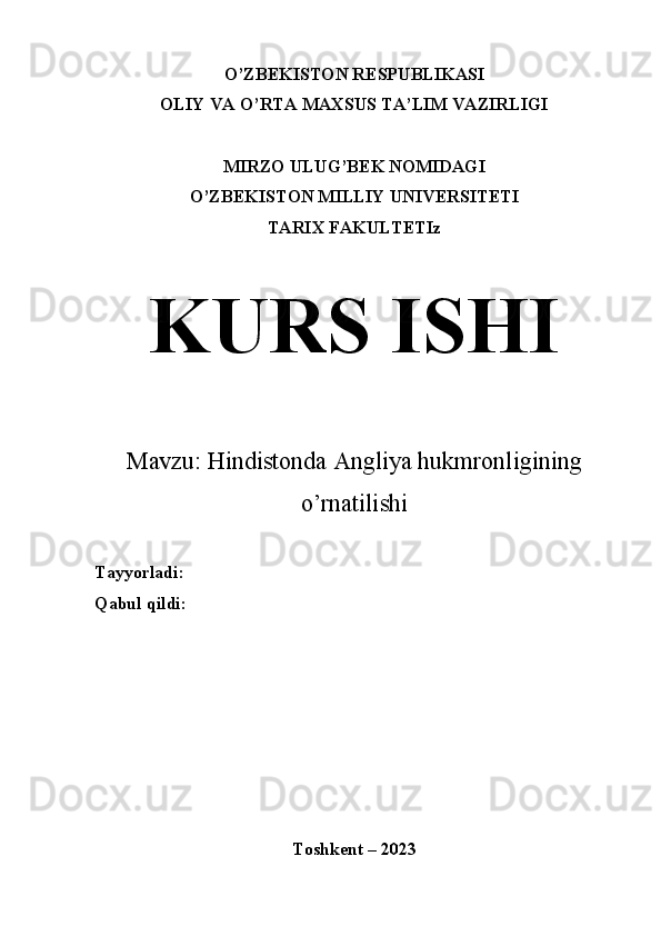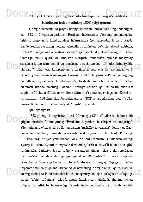 Hindistonda Angliya hukmronligining o'rnatilishi