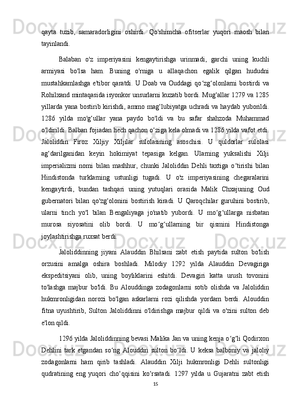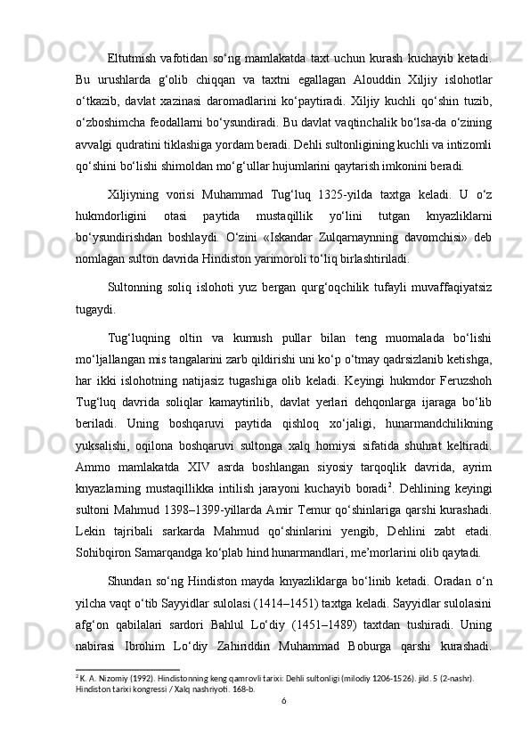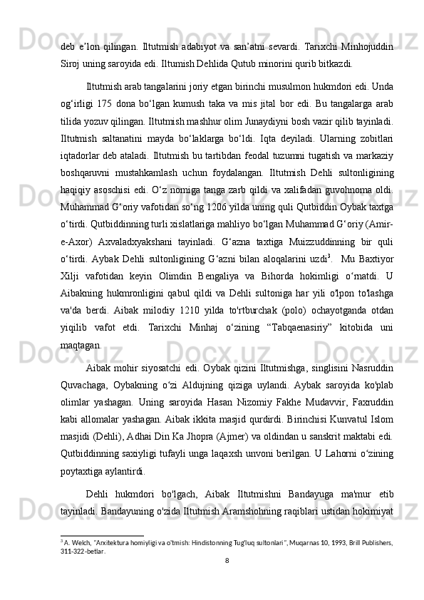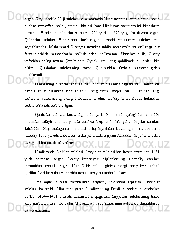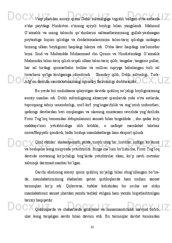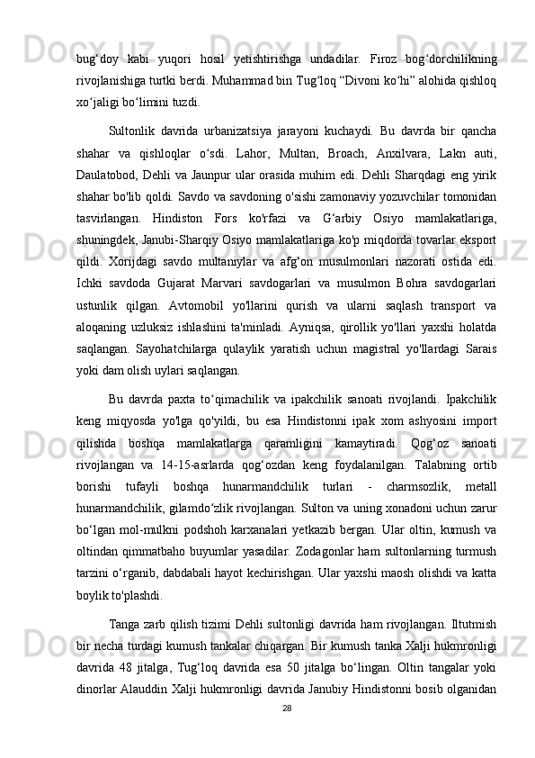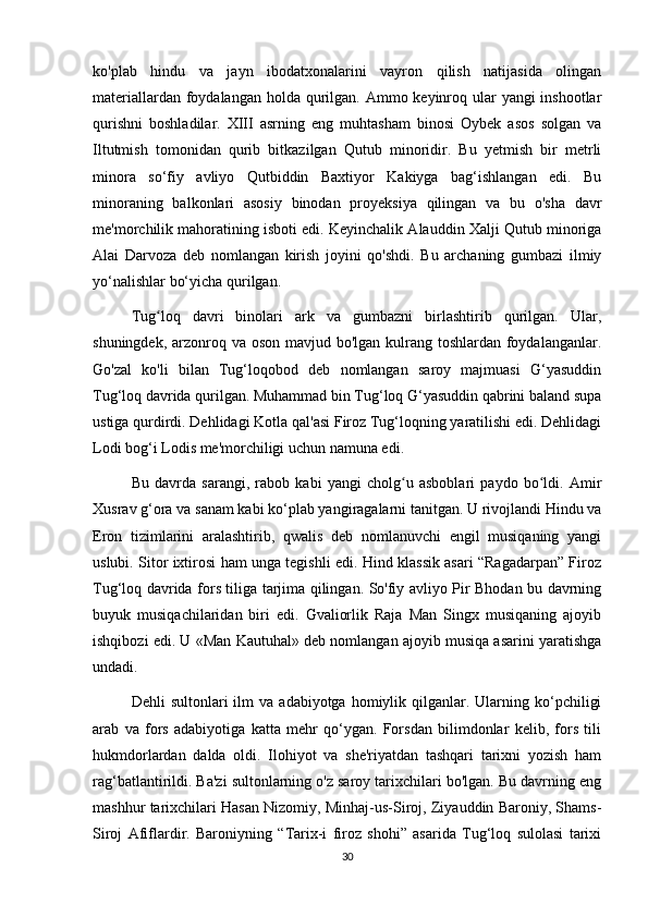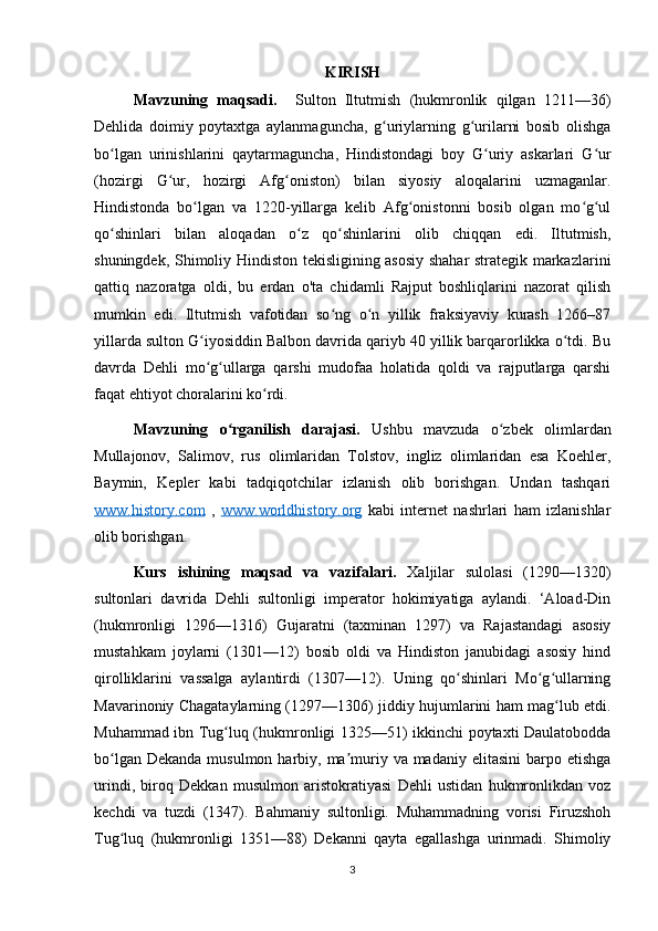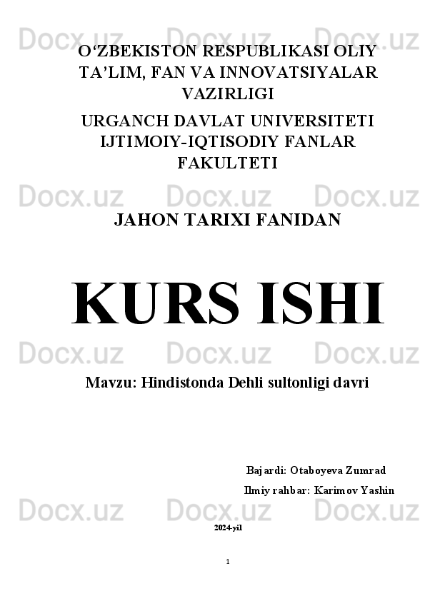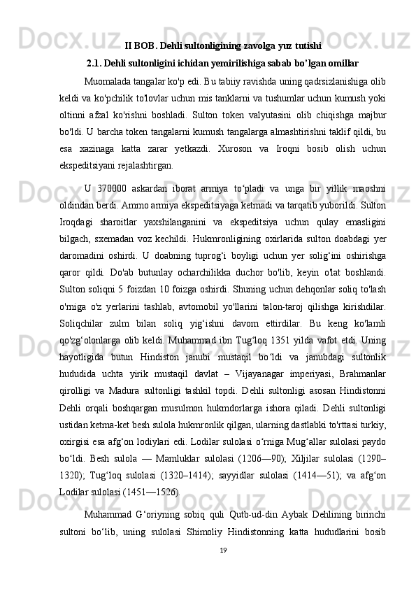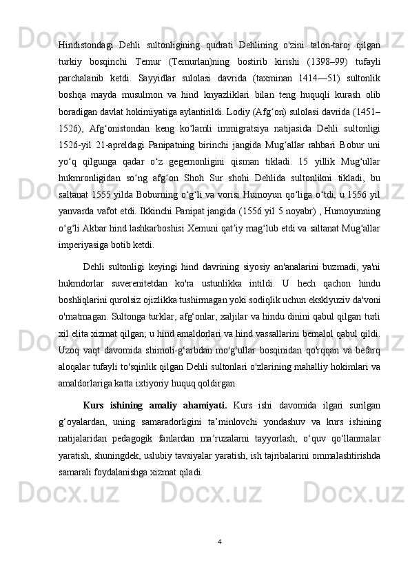 Hindistonda Dehli sultonligi davri mavzusida tayyor kurs ishi