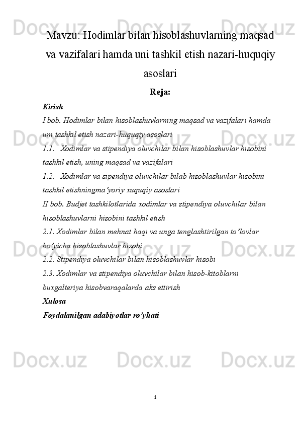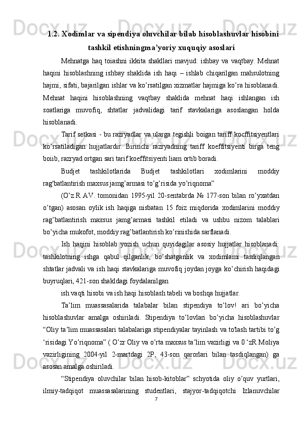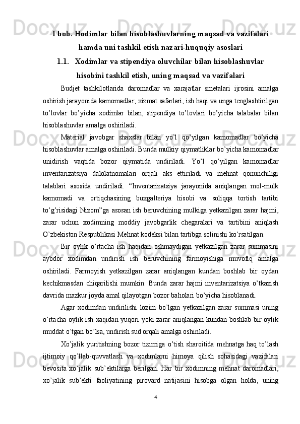 Hodimlar bilan hisoblashuvlarning maqsad va vazifalari hamda uni tashkil etish nazariy-huquqiy asoslari