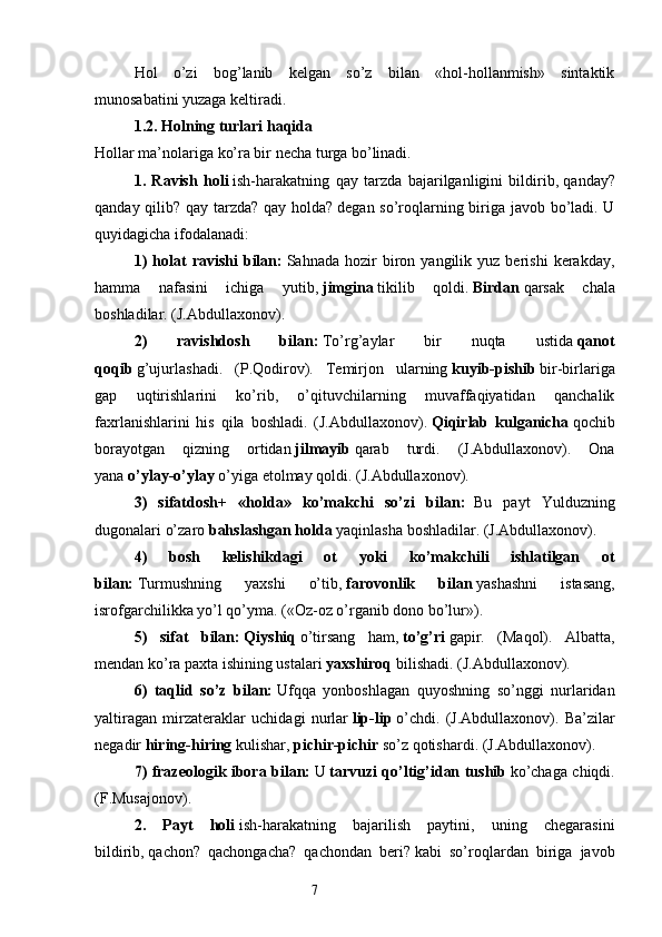 Hol va uning o’zbek tilshunosligidagi tadqiqi