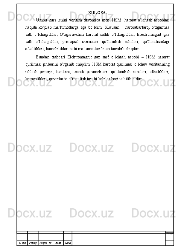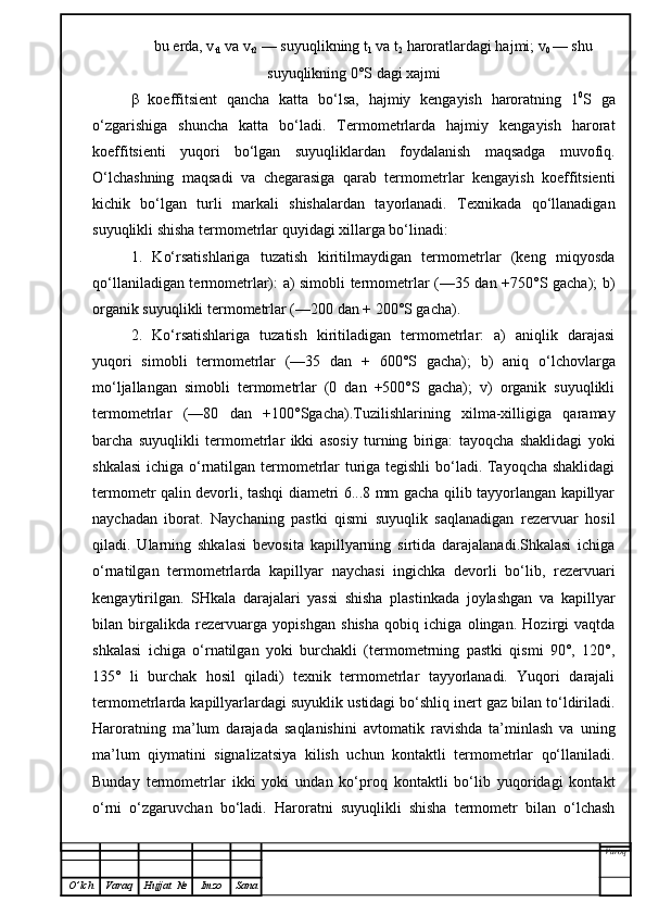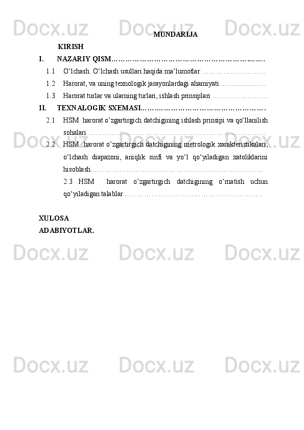 | 1.3 | Harorat turlar va ularning turlari, ishlash prinsiplari ……………..……. | ||