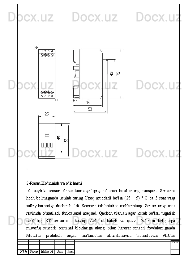 | 2.1 | HSM harorat o’zgartirgich datchigining ishlash prinsipi va qo‘llanilish sohalari ………………………………………………………………… | ||
