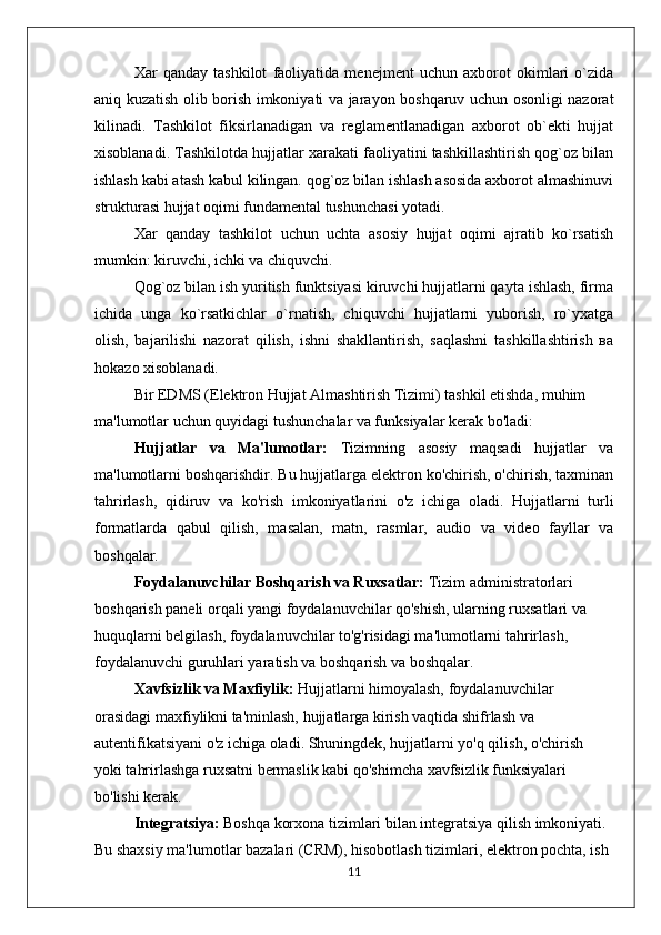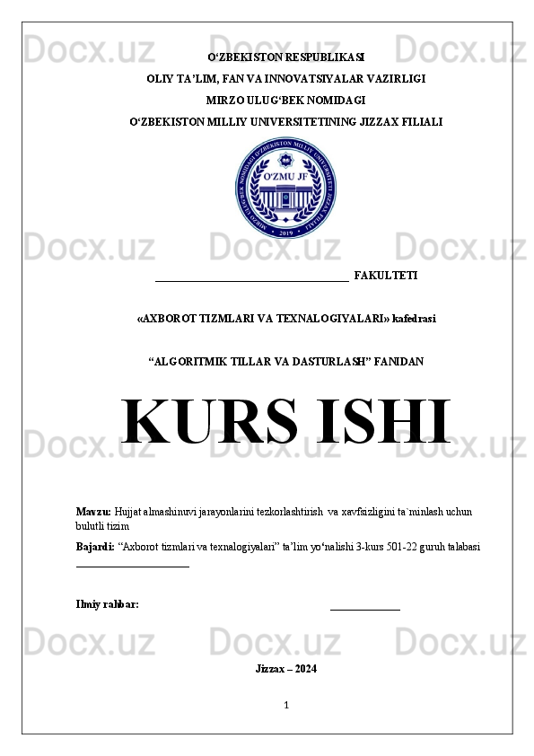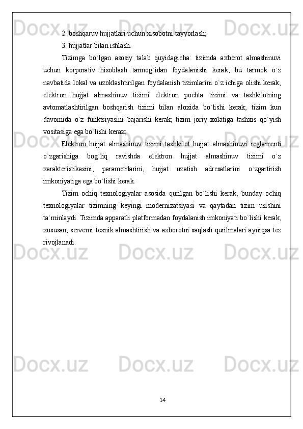 Hujjat almashinuvi jarayonlarini tezkorlashtirish va xavfsizligini ta`minlash uchun bulutli tizim