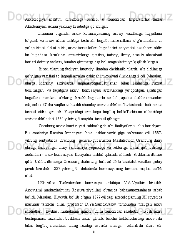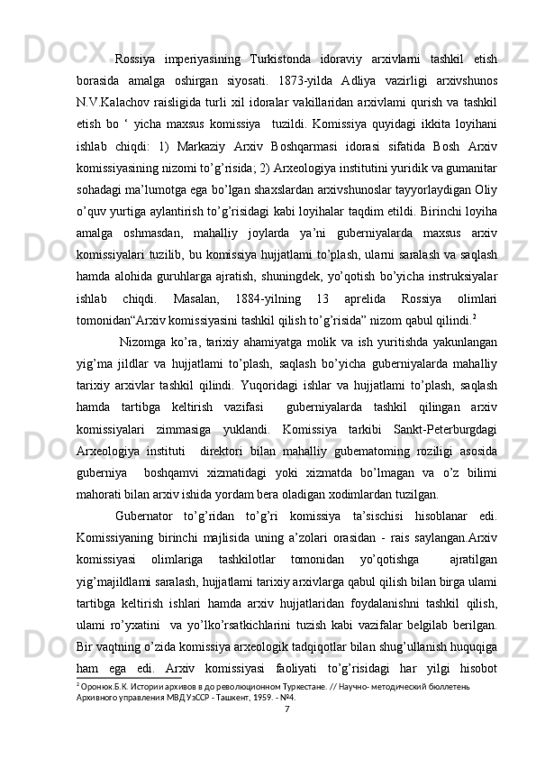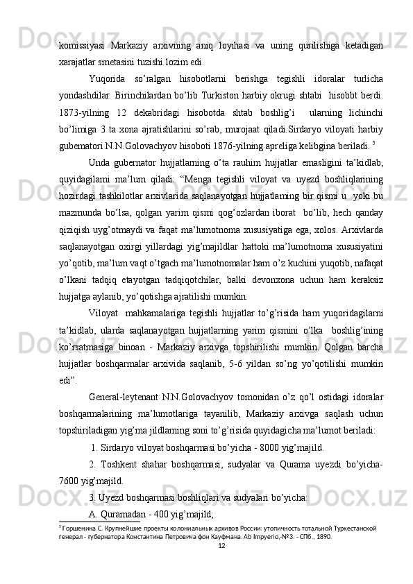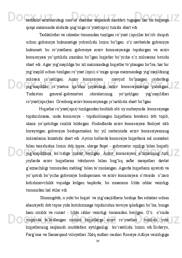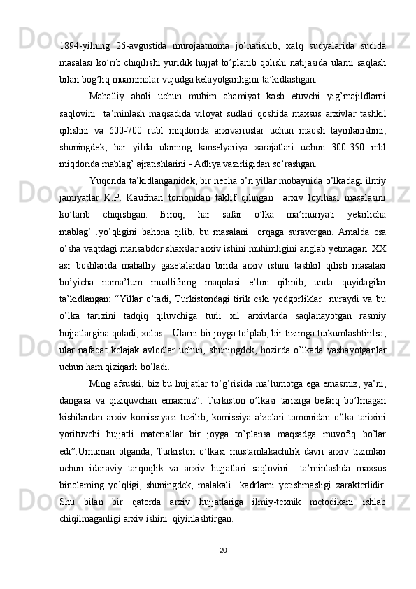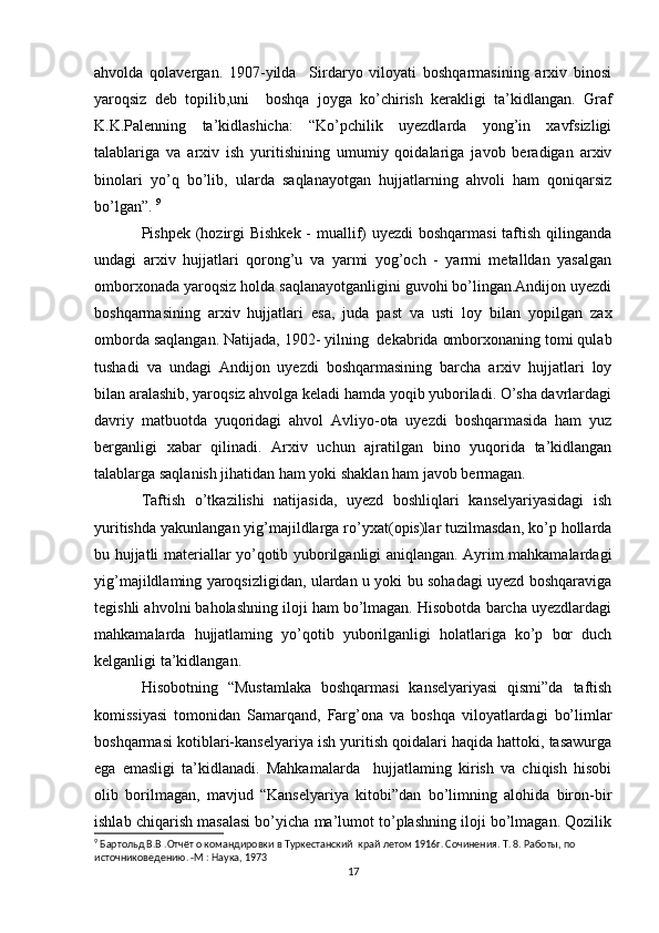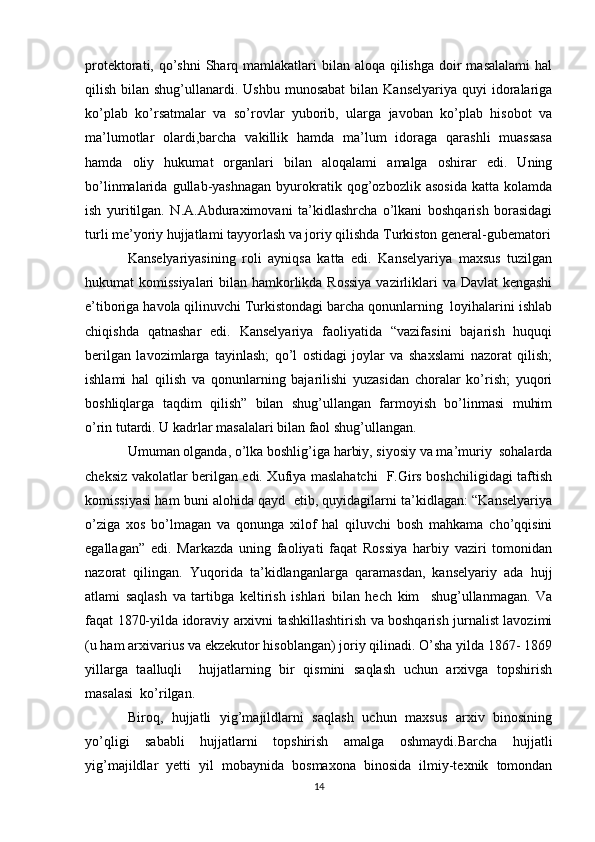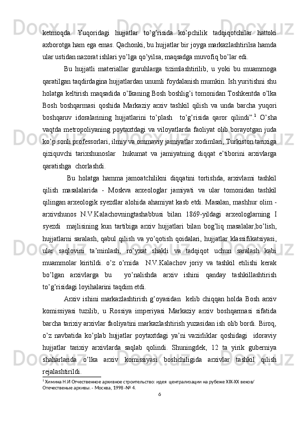 | I.1. | Turkiston general-gubernatorligi davrida hujjatlarni saqlash ahvoli . . . . . . . . . . . . . . . . . . . . . . . . . . . . . . . . . . .