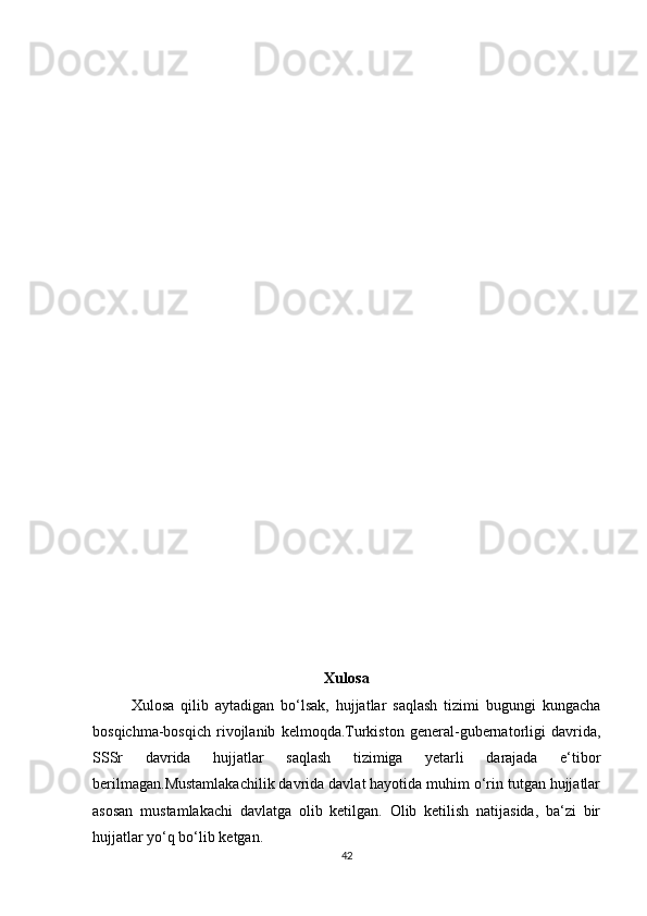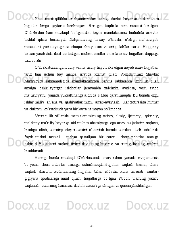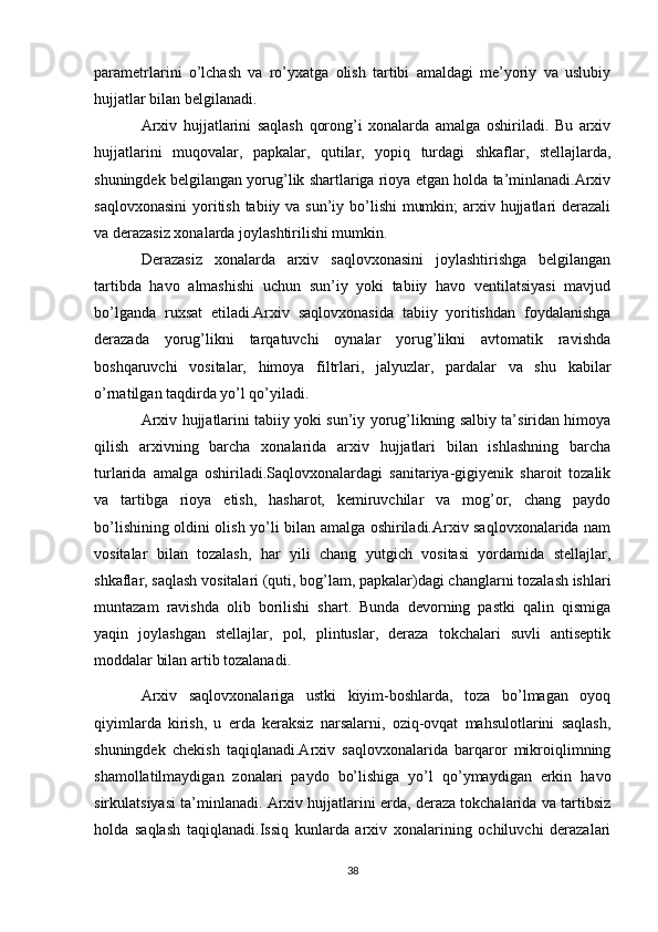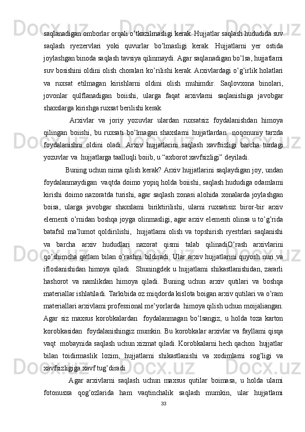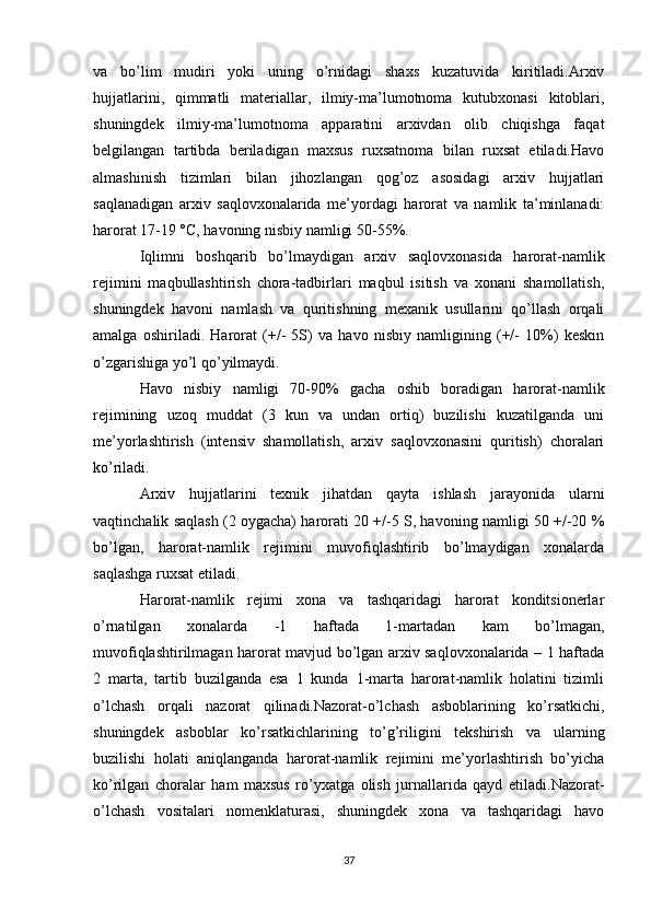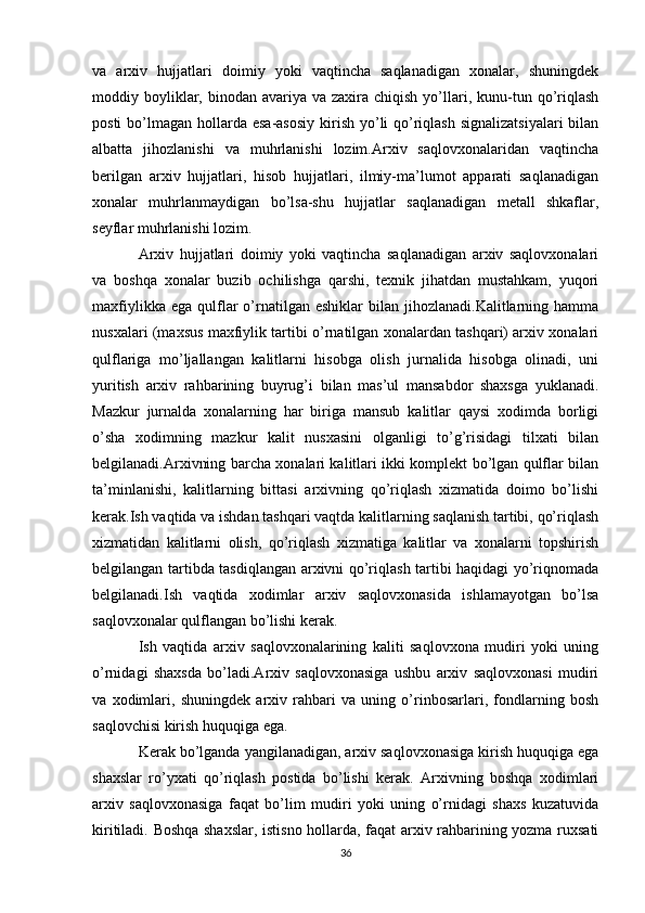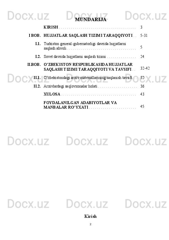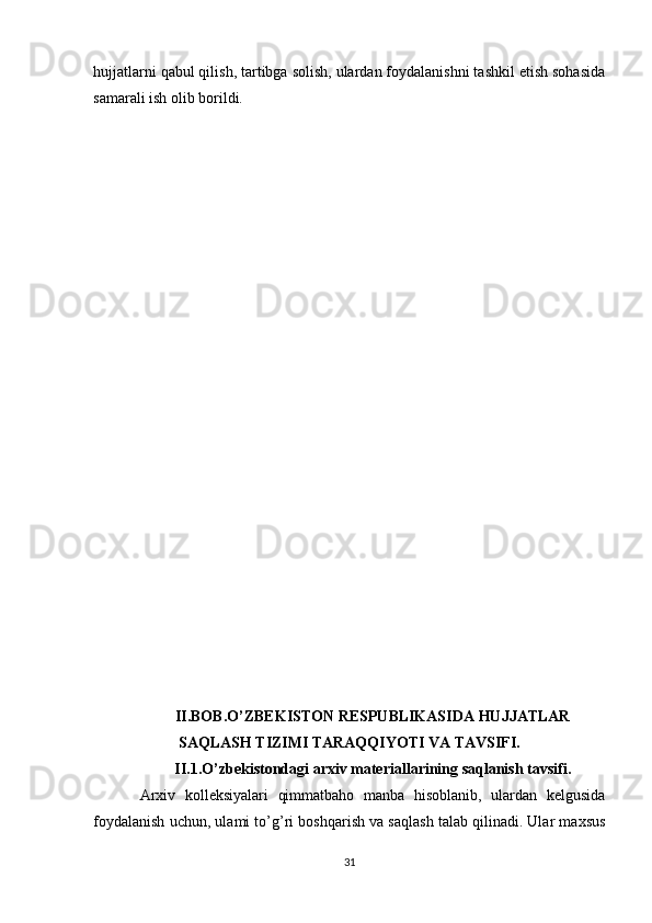 | II.BOB. | O’ZBEKISTON RESPUBLIKASIDA HUJJATLAR SAQLASH TIZIMI TARAQQIYOTI VA TAVSIFI . .