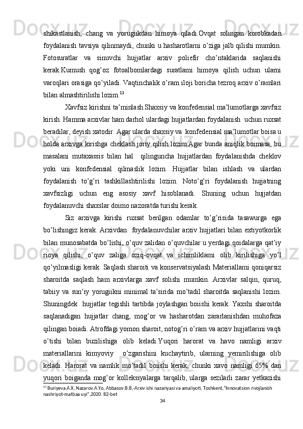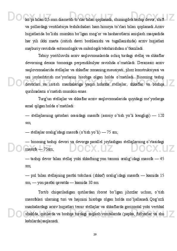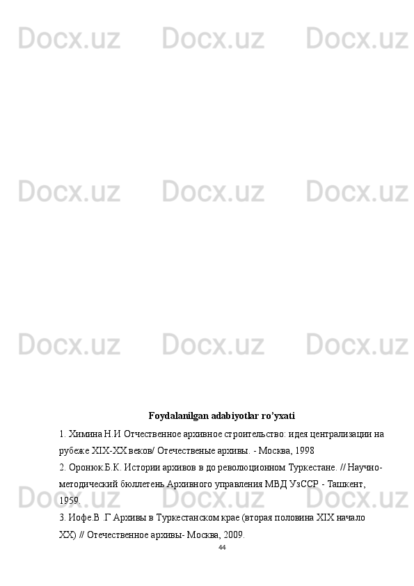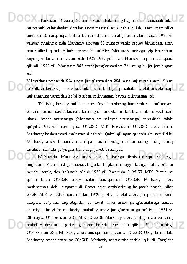 | II.1. | O’zbekistondagi arxiv materiallarining saqlanish tavsifi. . .