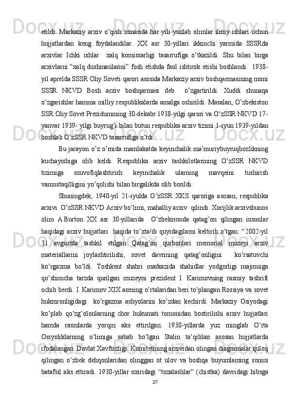 | I.2. | Sovet davrida hujjatlarni saqlash tizimi . . . . . . . . . . . . . . .