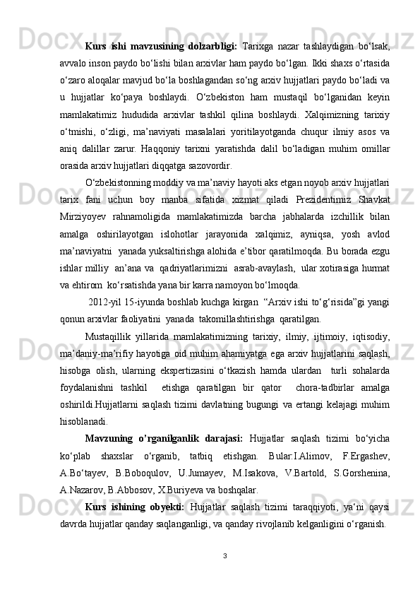 | I BOB. | HUJJATLAR SAQLASH TIZIMI TARAQQIYOTI . .