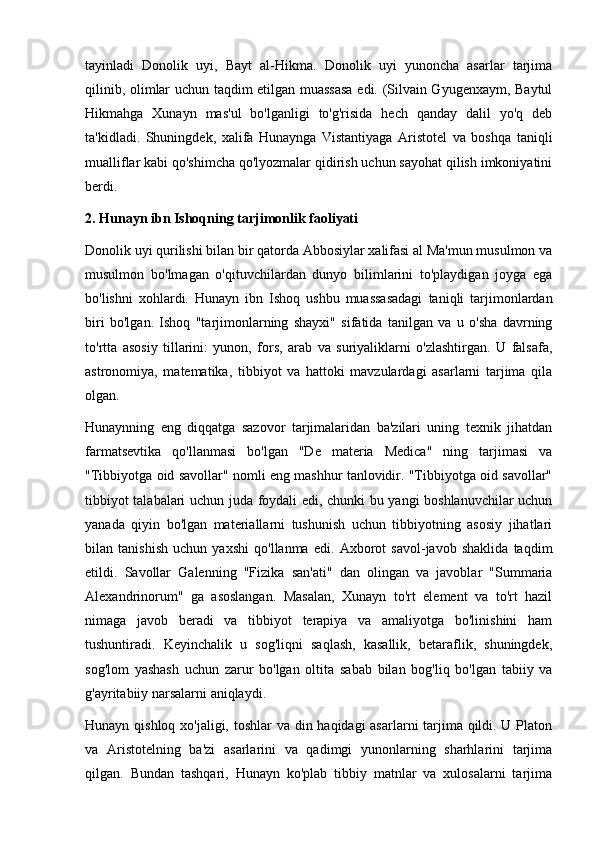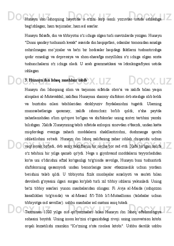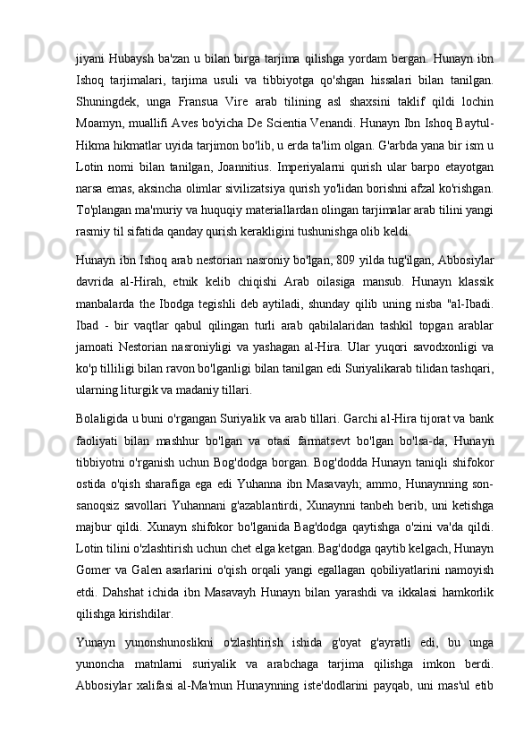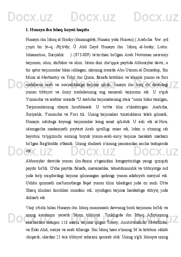 Hunayn ibn Ishoq-mashhur tarjimon va tabib