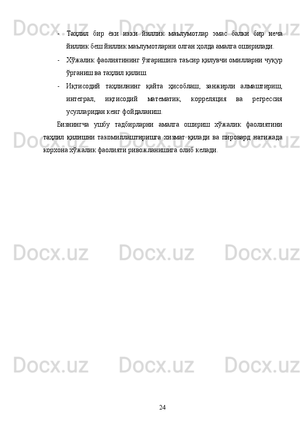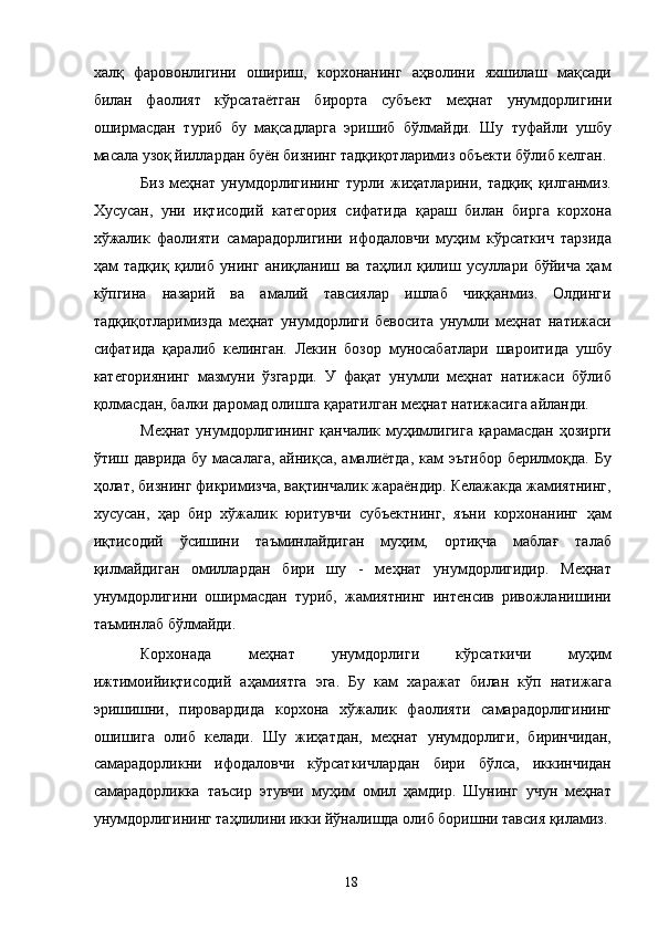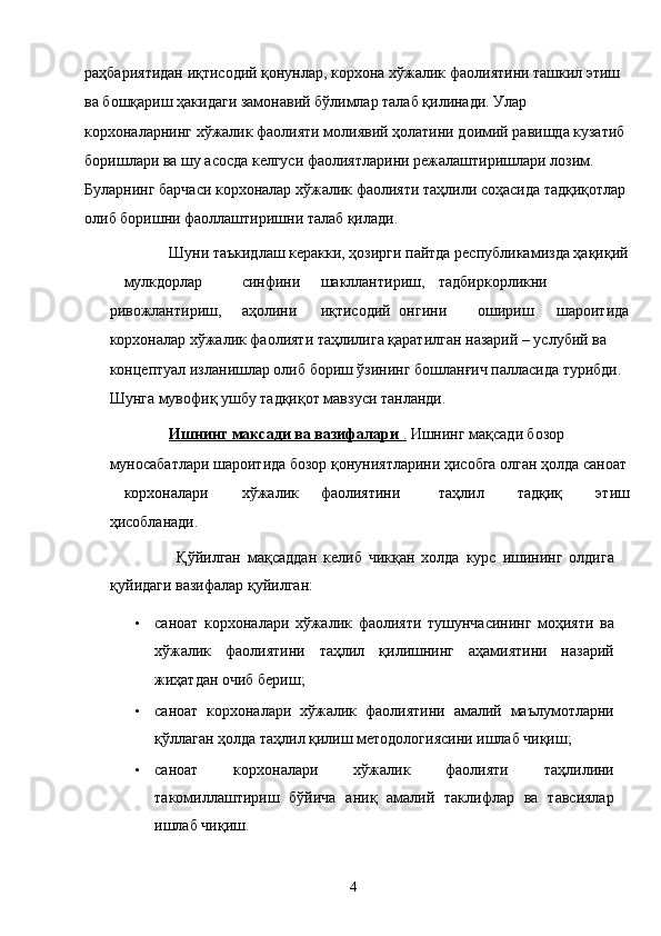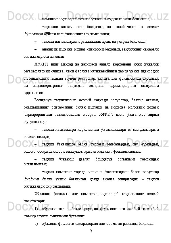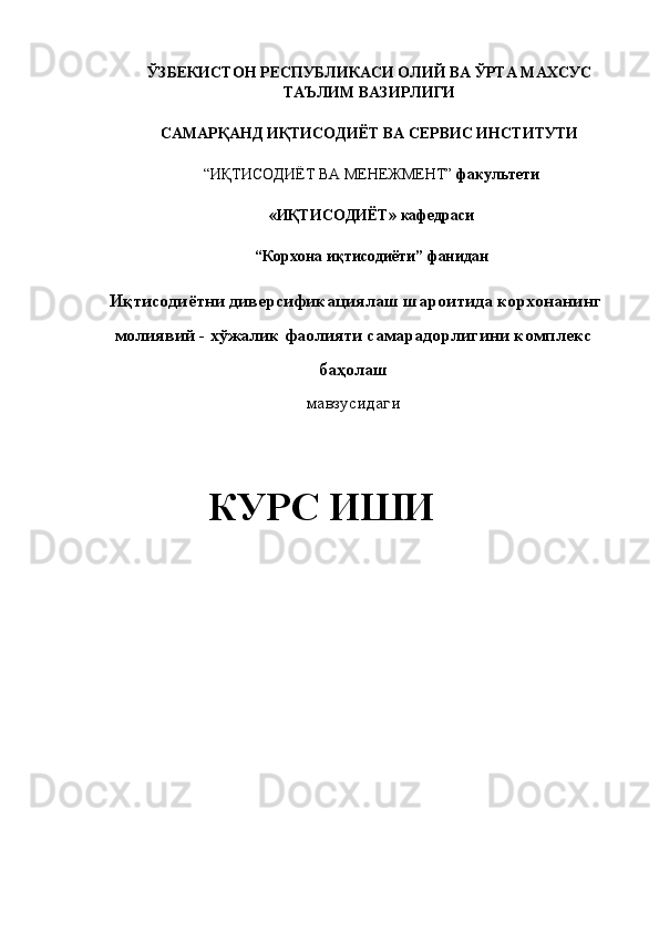 Иқтисодиётни диверсификациялаш шароитида корхонанинг молиявий - хўжалик фаолияти самарадорлигини комплекс