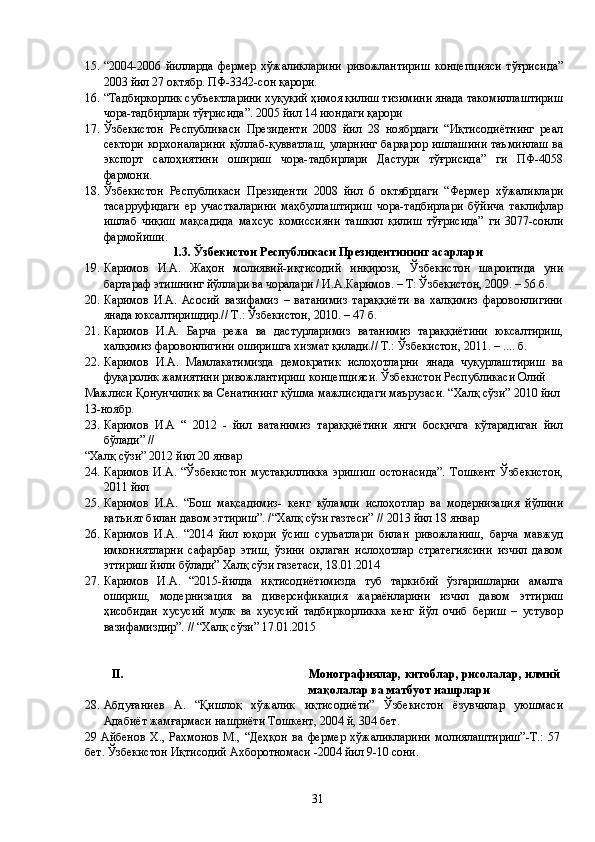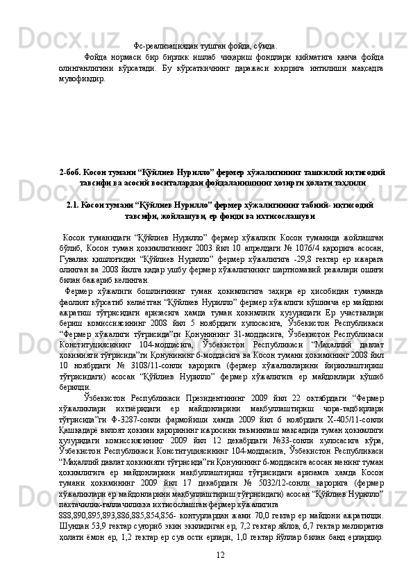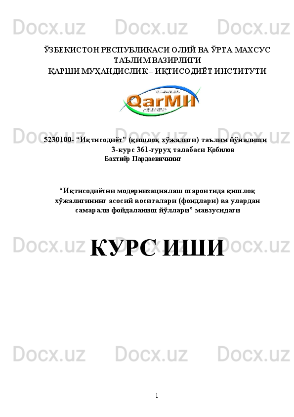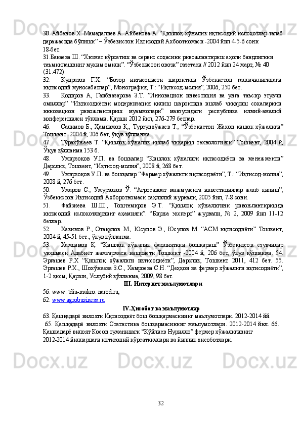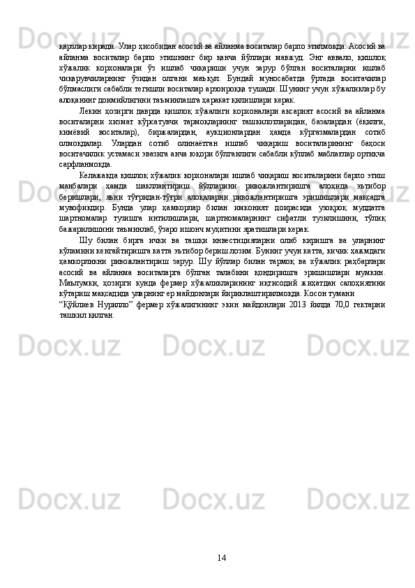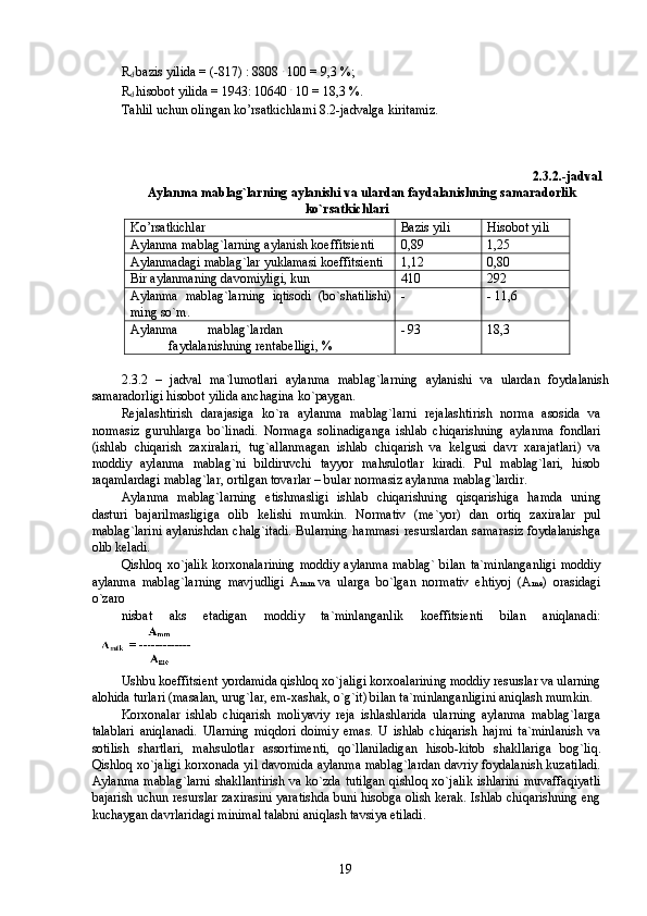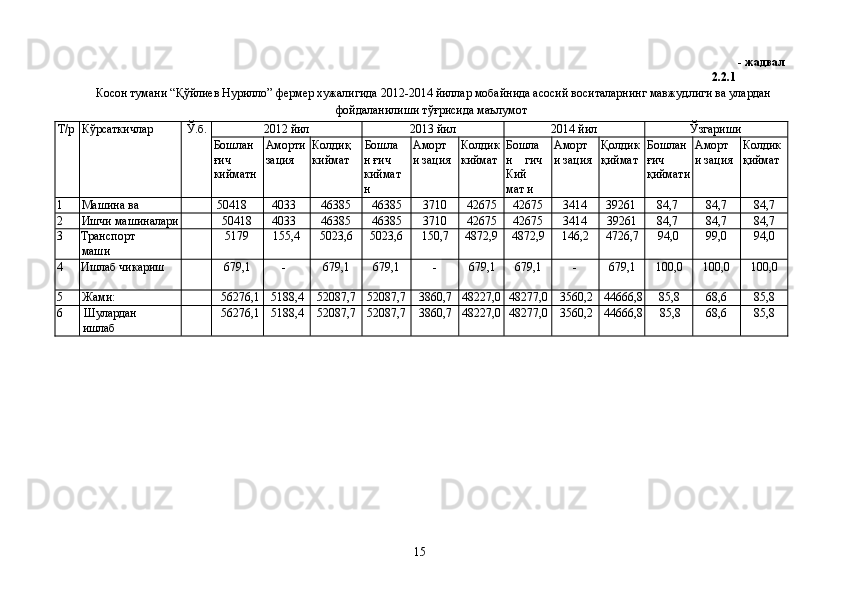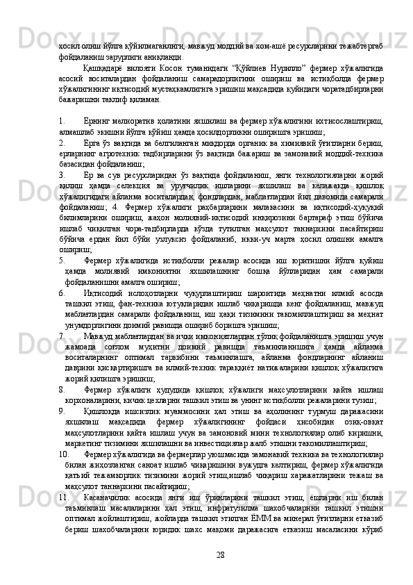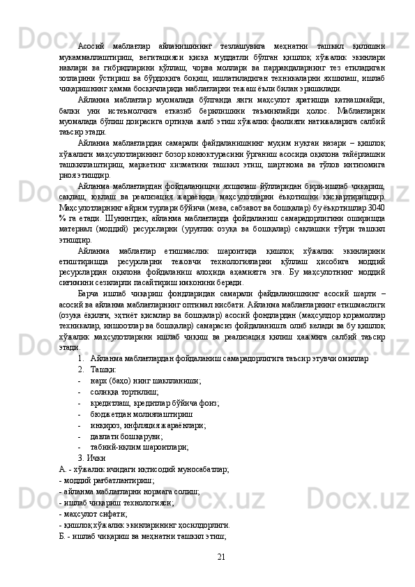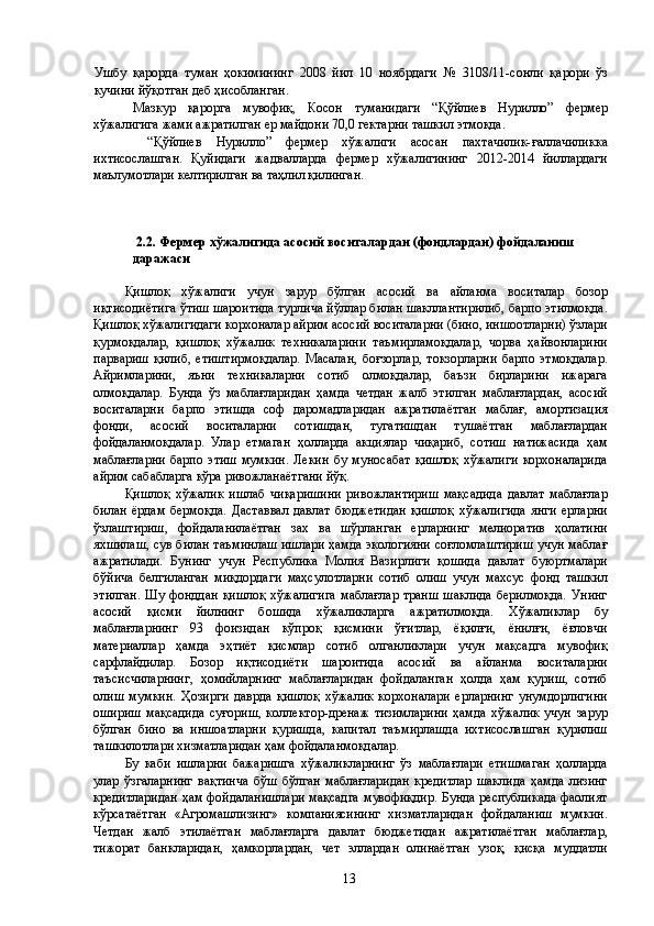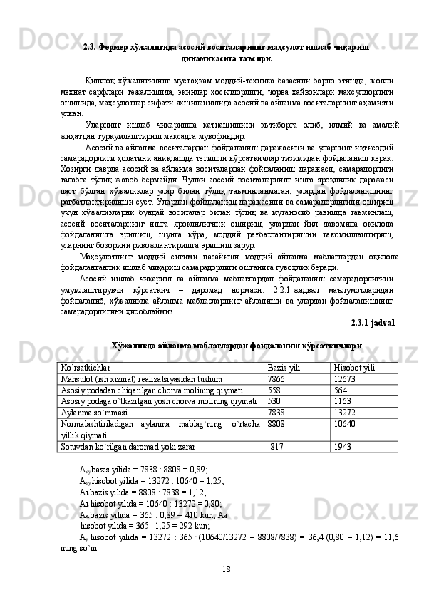 Иқтисодиётни модернизациялаш шароитида қишлоқ хўжалигининг асосий воситалари (фондлари) ва улардан самарали фойдаланиш йўллари
