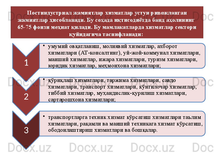Иқтисодиётни ривожлантиришда пуллик хизматлар