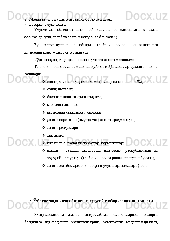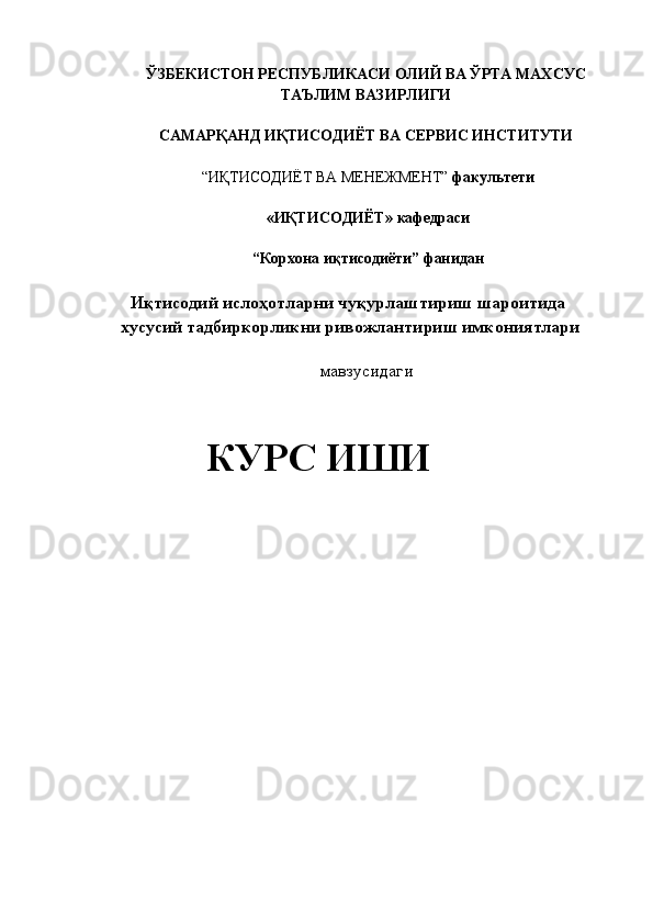 I. Ўзбекистон   Республикасида   кичик   ва   хусусий