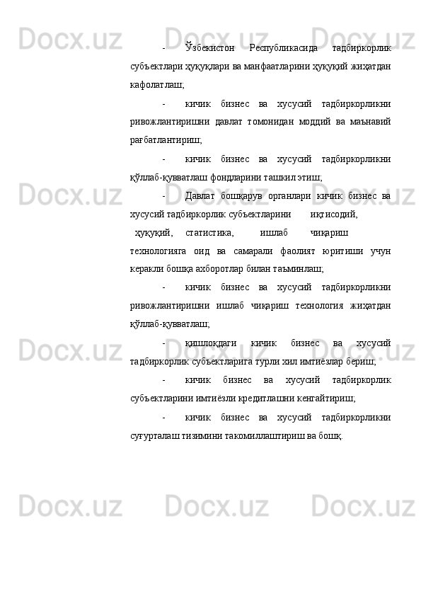 - тадбиркорликнинг   барча   турдаги   ишлаб   чиқариш   хўжалик