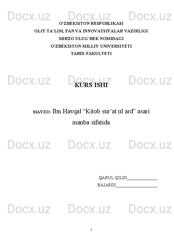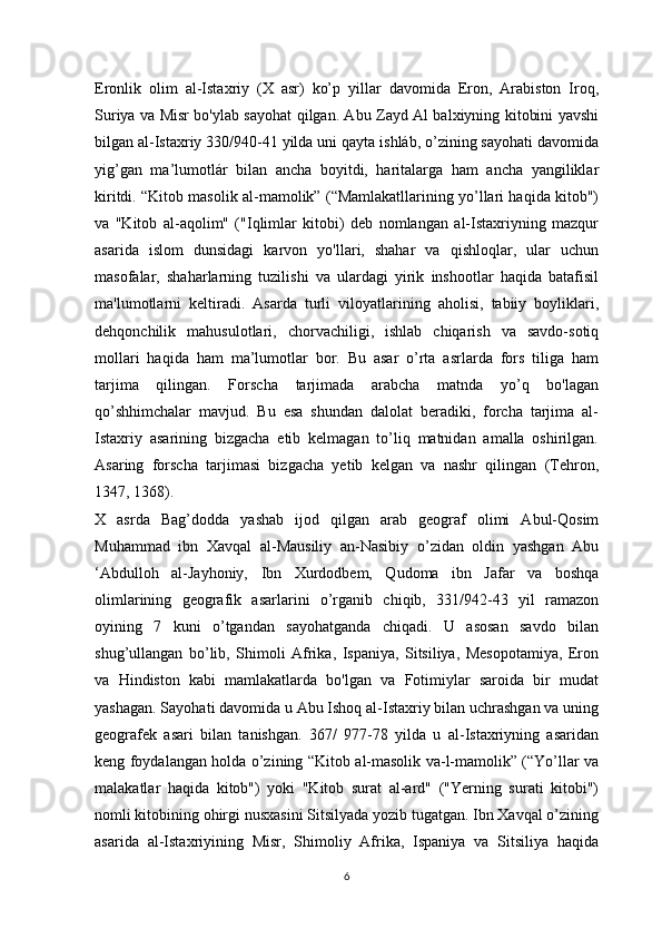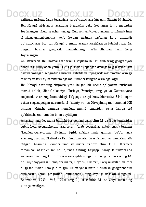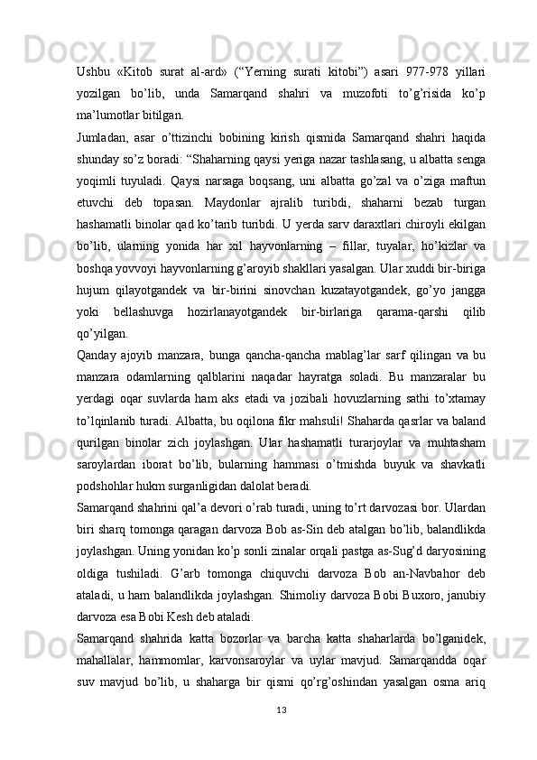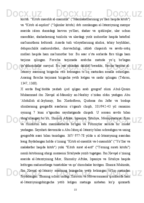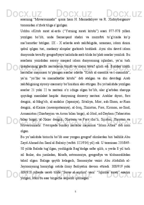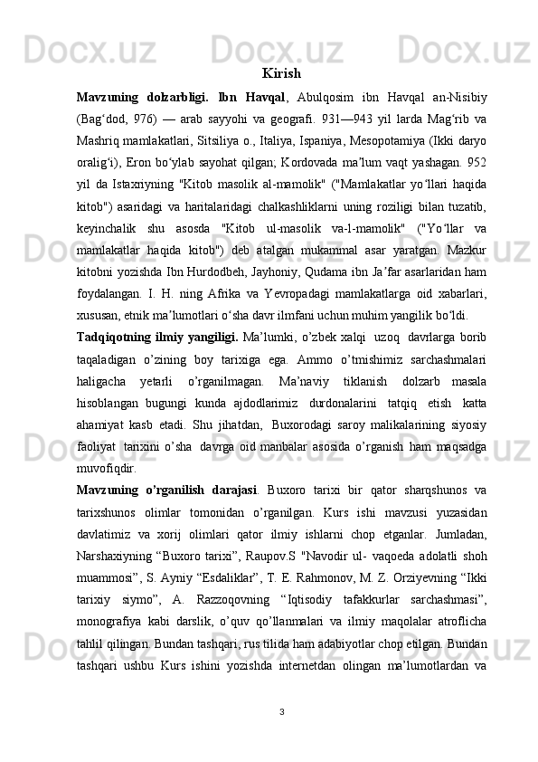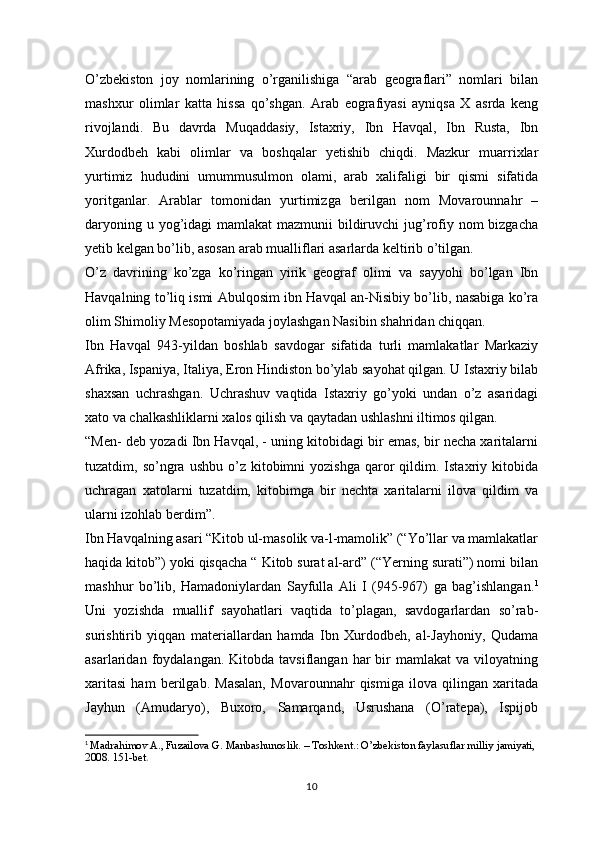 Ibn Havqal “Kitob sur’at ul ard” asari manba sifatida