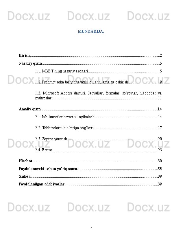 bo’limidan   foydalandim.   Men   bu   kurs   ishimni   tayyorlash   davomida   Access