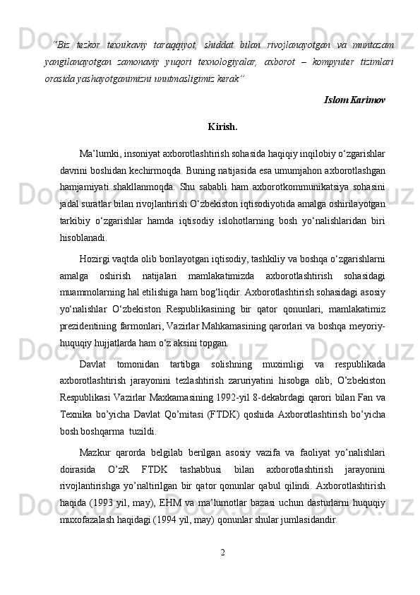 4. O‘zbekiston  Respublikasining  “Axborotlashtirish
