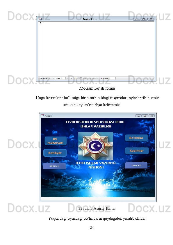 So’ng o’zimizga kerakli bo’lgan  formalarni yuqoridagidek yaratib olamiz.