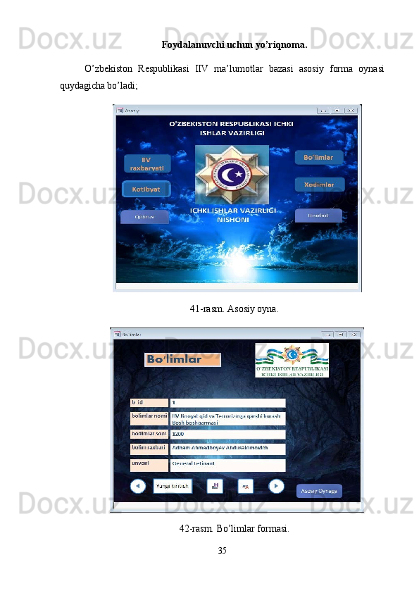 Foydalanuvchi uchun yo’riqnoma. .............................................................................. 35