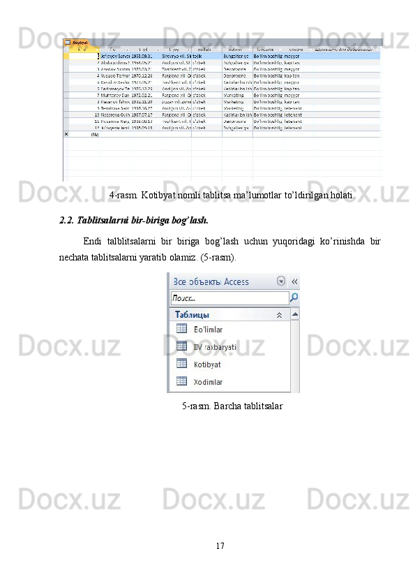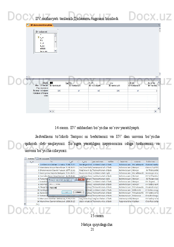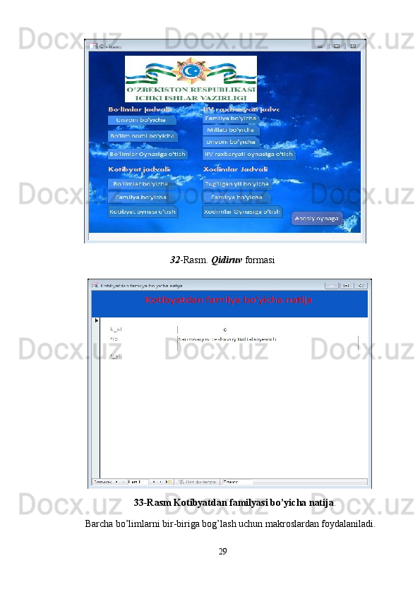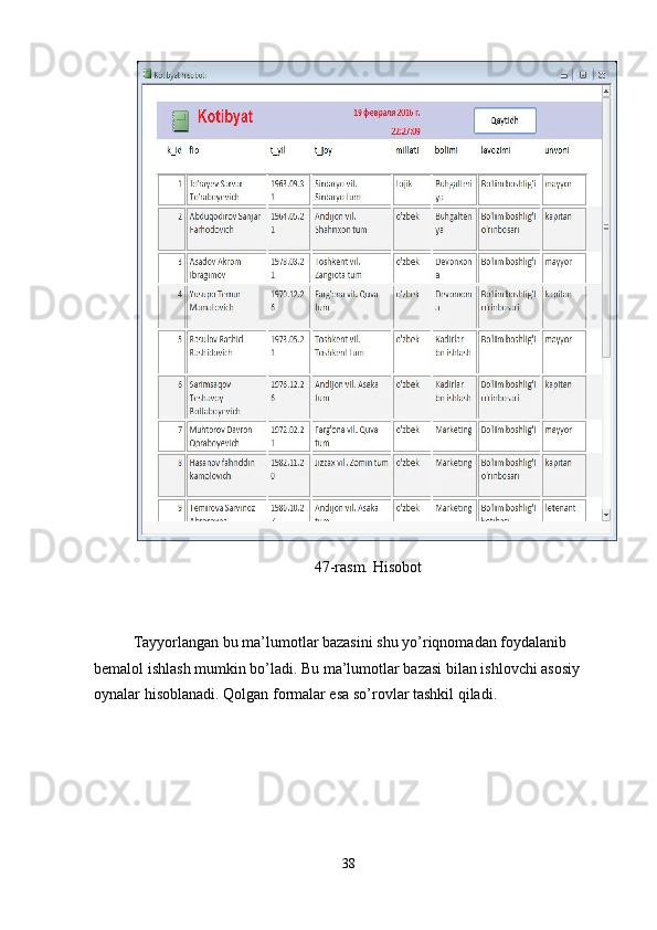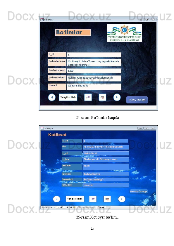 Ichki ishlar boshqarmasi ro'yhatga olish bo'limi ma'lumotlar bazasini yaratish