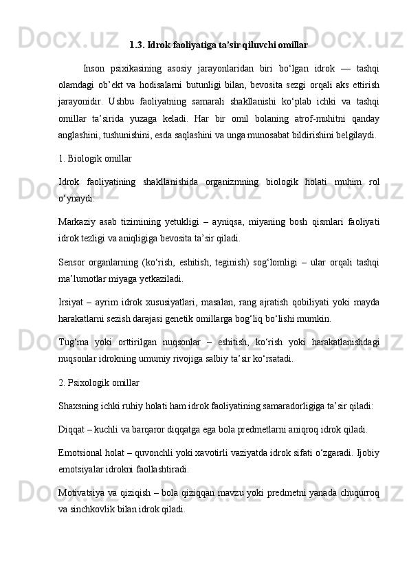 Harakat idrokni organish metodikasi