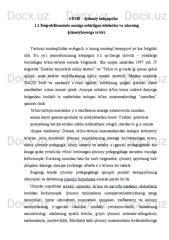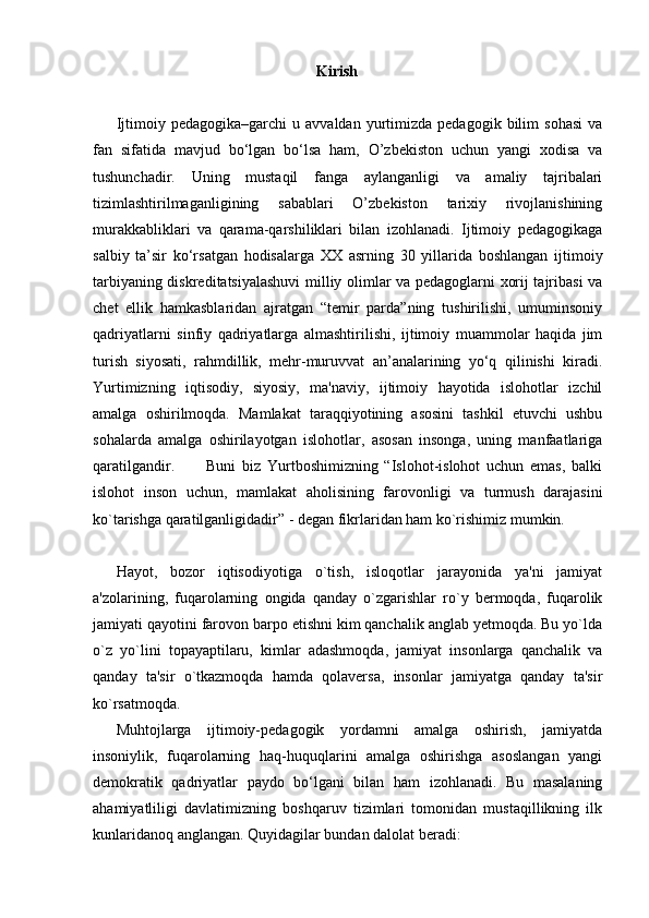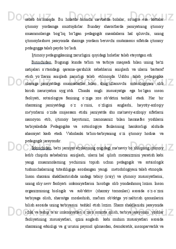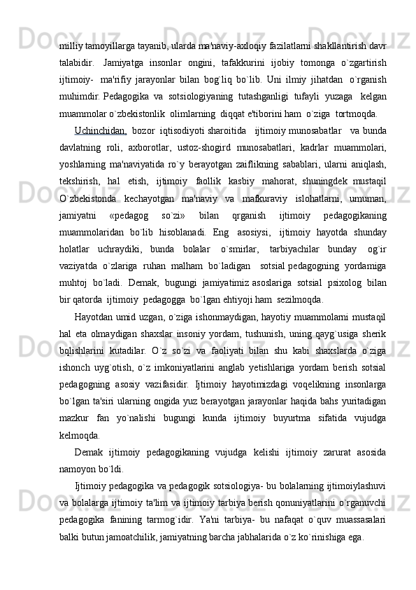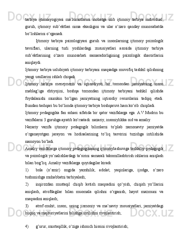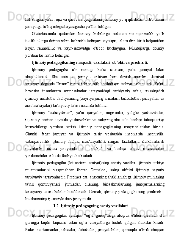 Ijtimoiy pedagogikaning mazmuni, maqsad va vazifalari. Ijtimoiy pedagogikaning tarkibiy qismlari