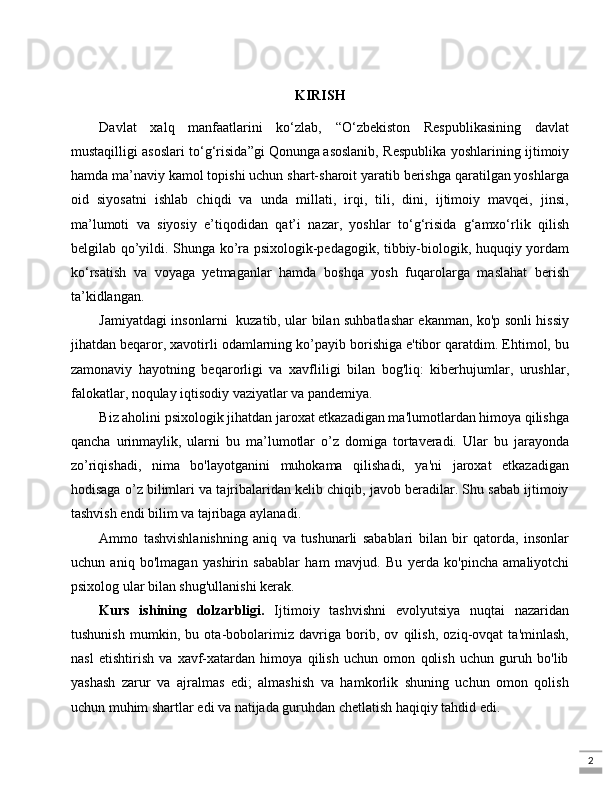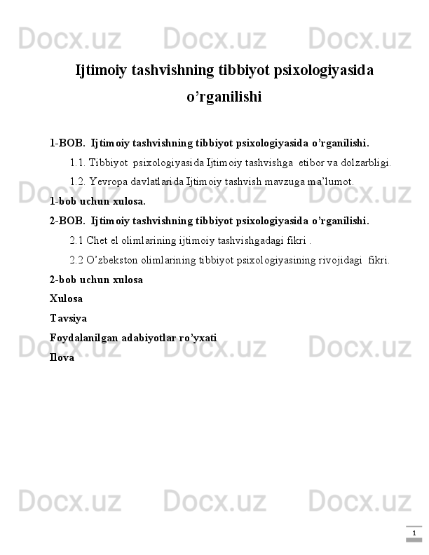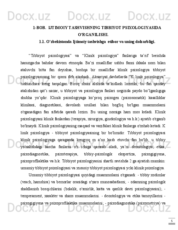 1-BOB. Ijtimoiy tashvishning tibbiyot psixologiyasida o’rganilishi.