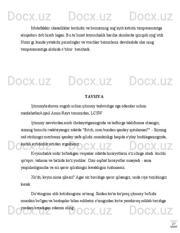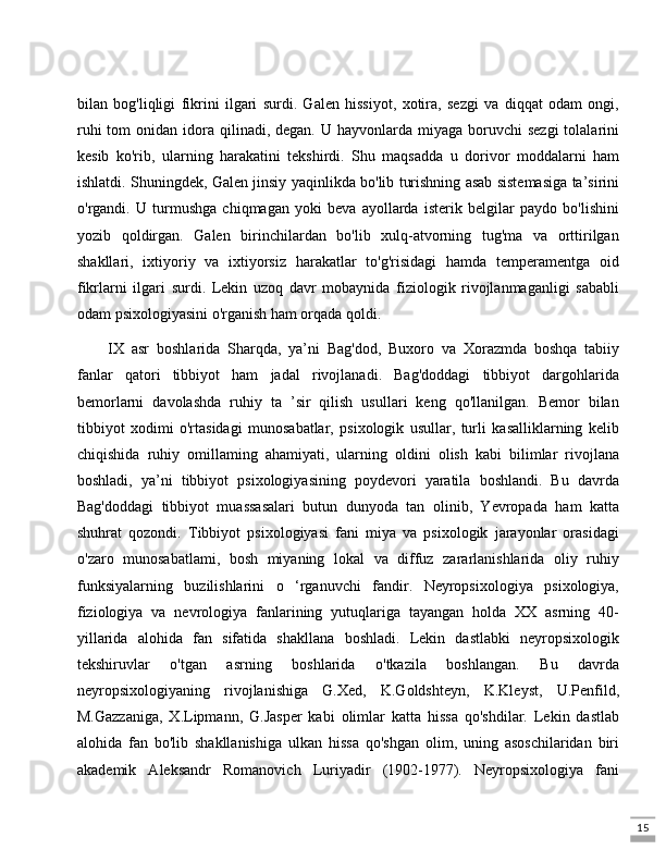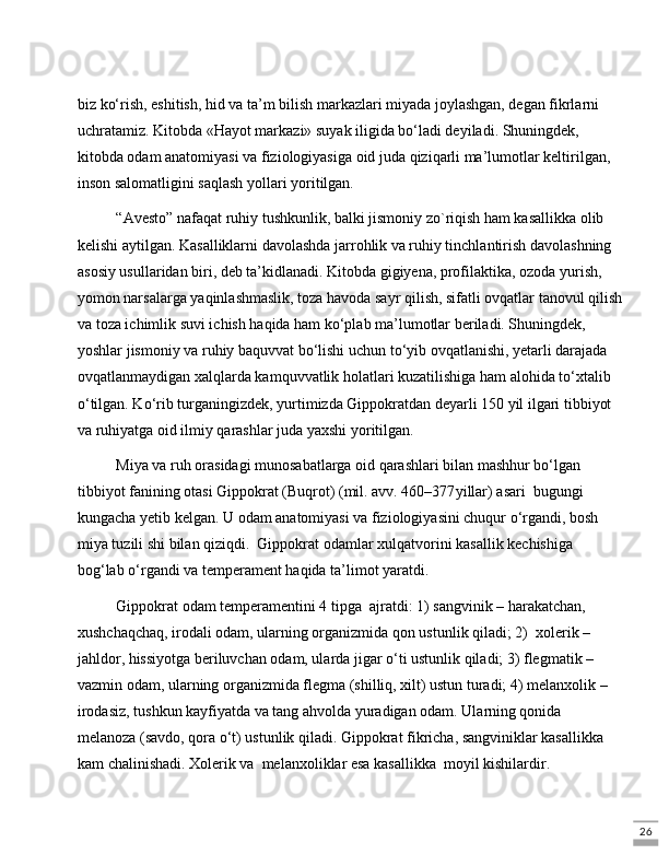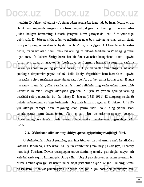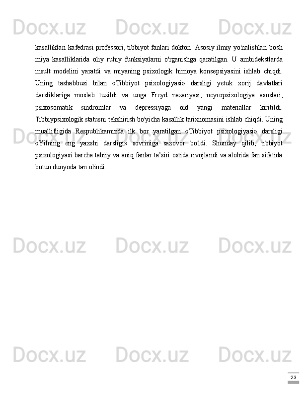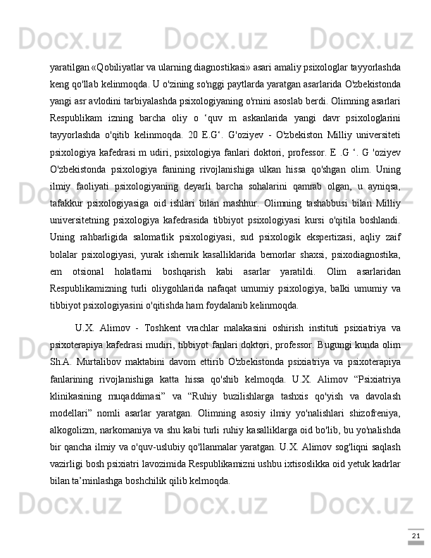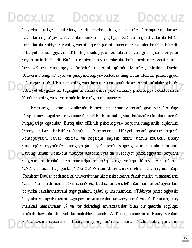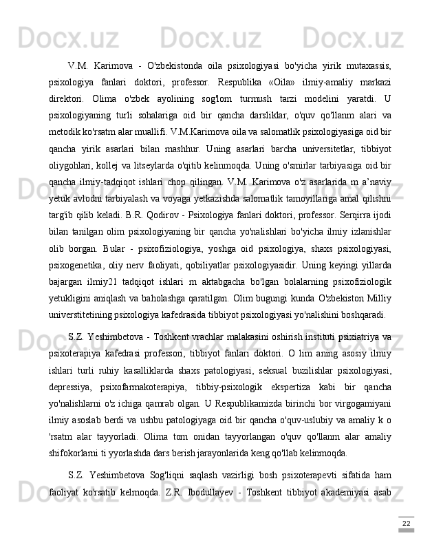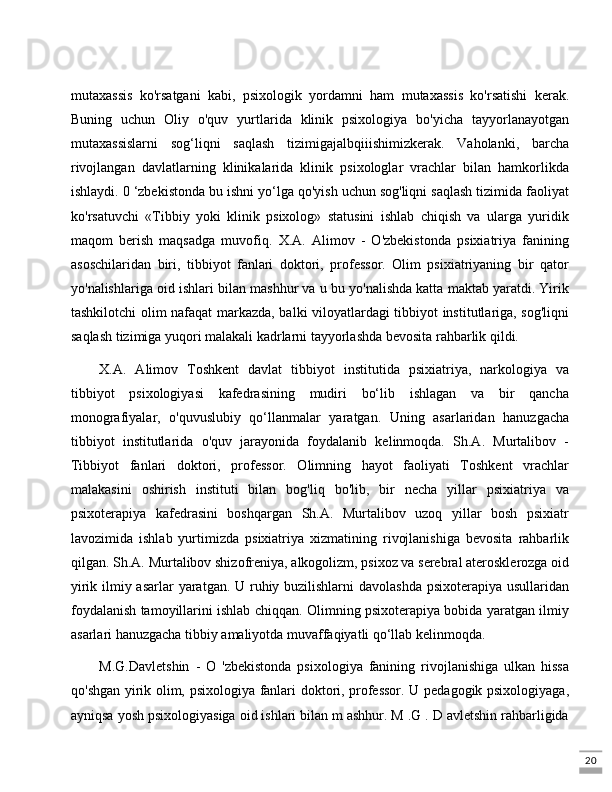 2.2 O’zbekston olimlarining tibbiyot psixologiyasining rivojidagi fikri.