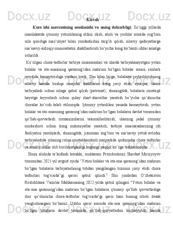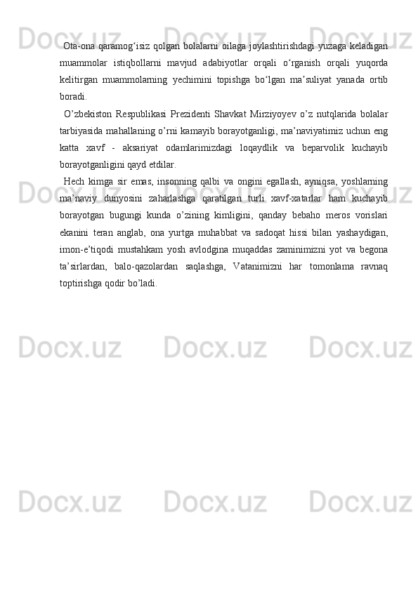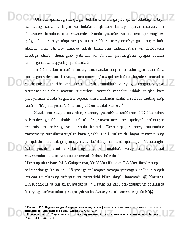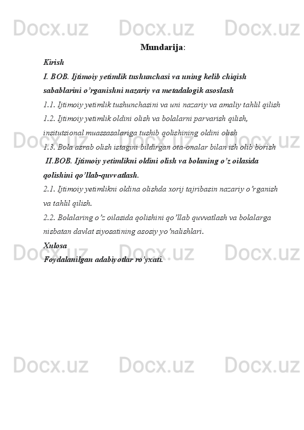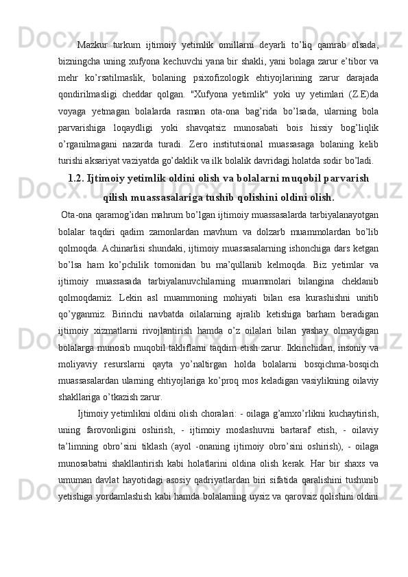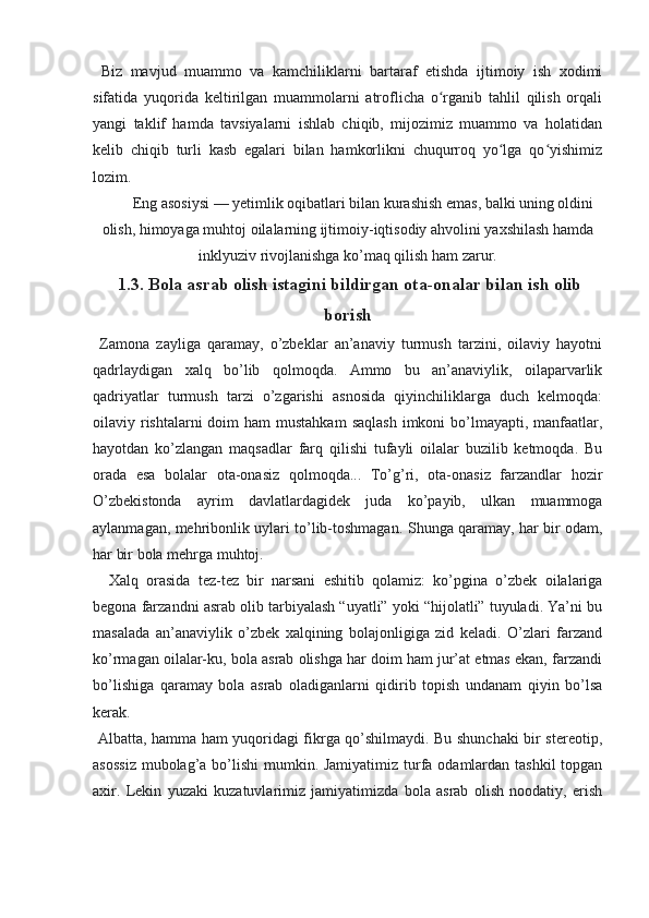 Ijtimoiy yetimlikni oldini olish va bolalarning o'z oilalarini qo'llab quvvatlash
