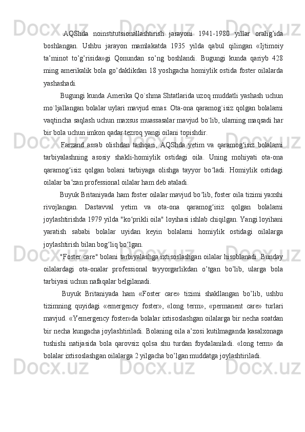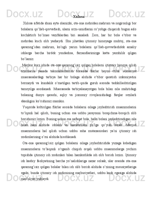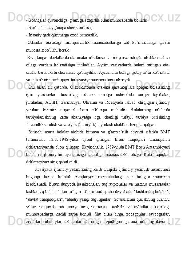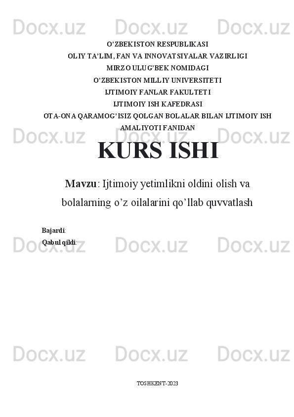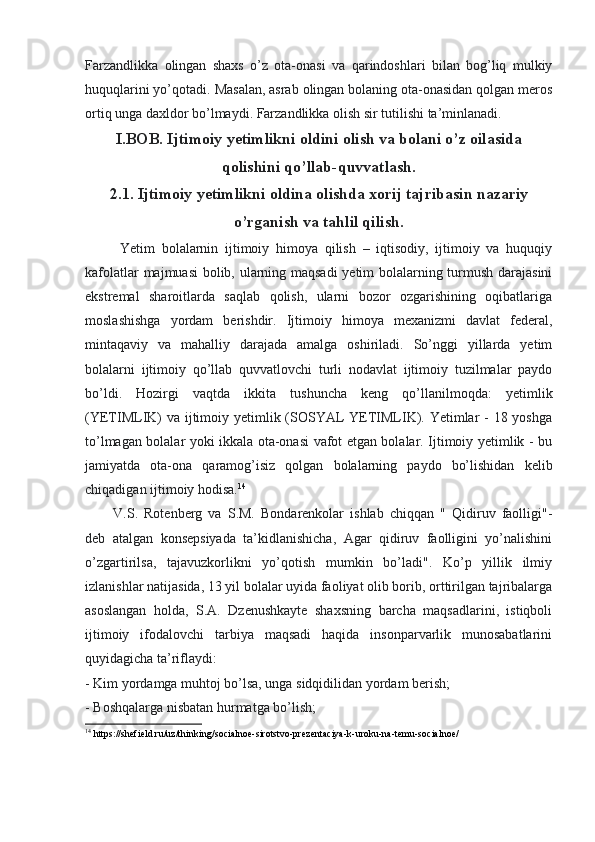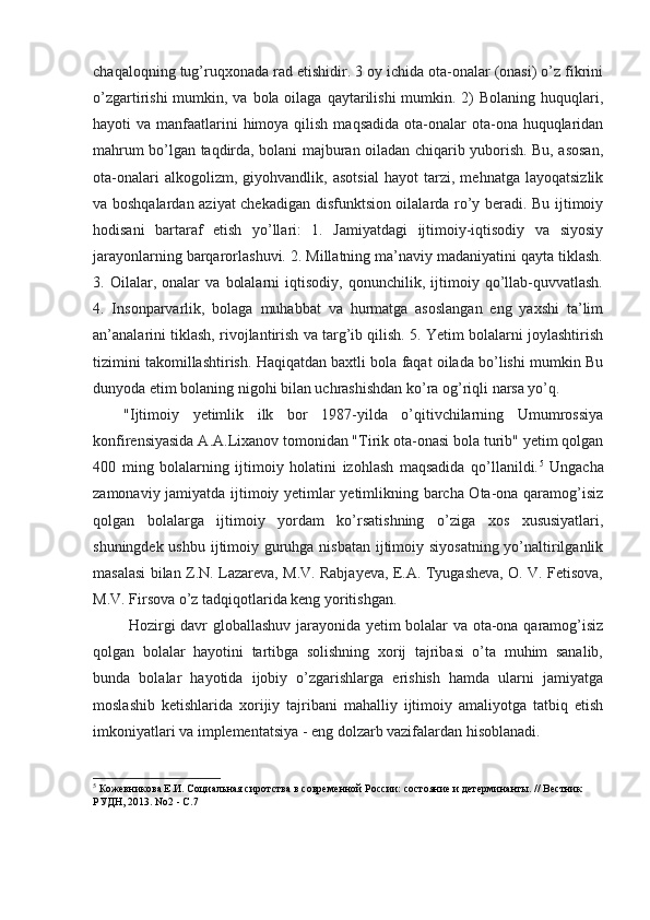 Ijtimoiy yetimlikni oldini olish va bolalarning o'z oilalarini qo'llab quvvatlash