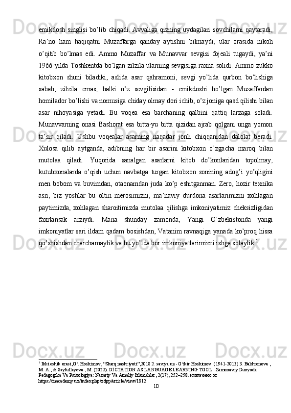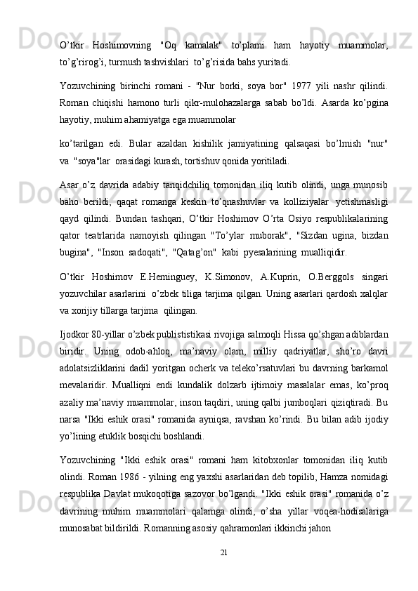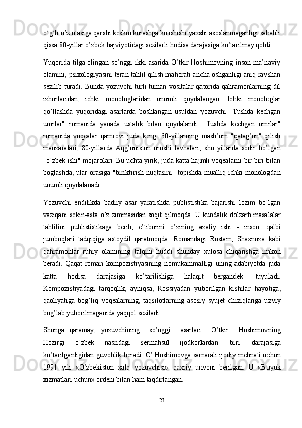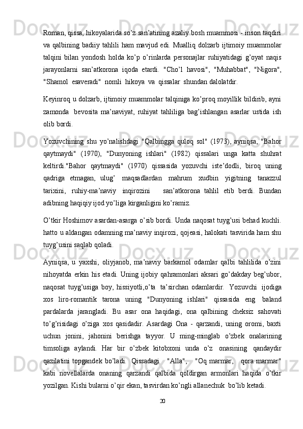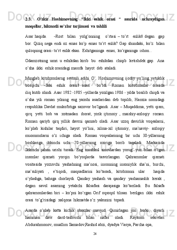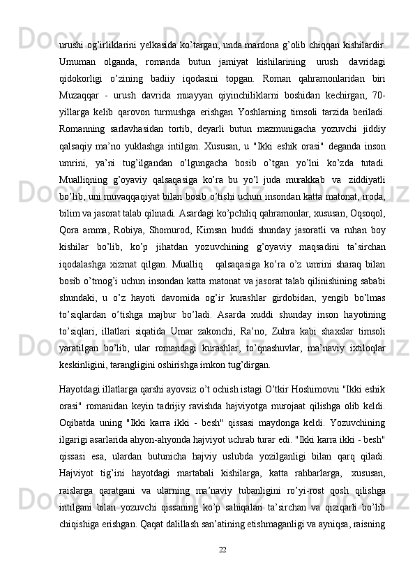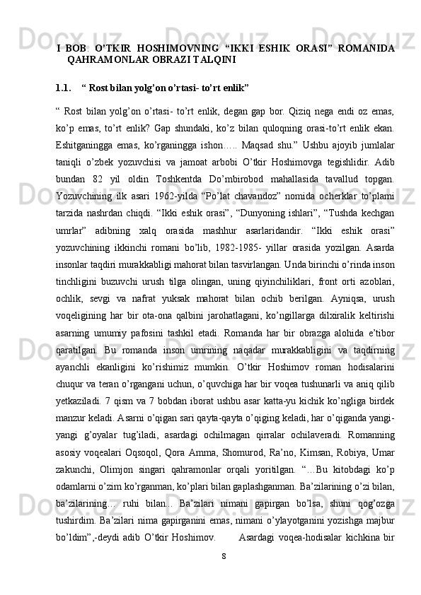 Ikki eshik orasi romanida zamon-qahramon munosabatlarining badiiy talqini