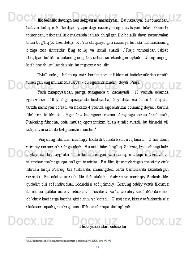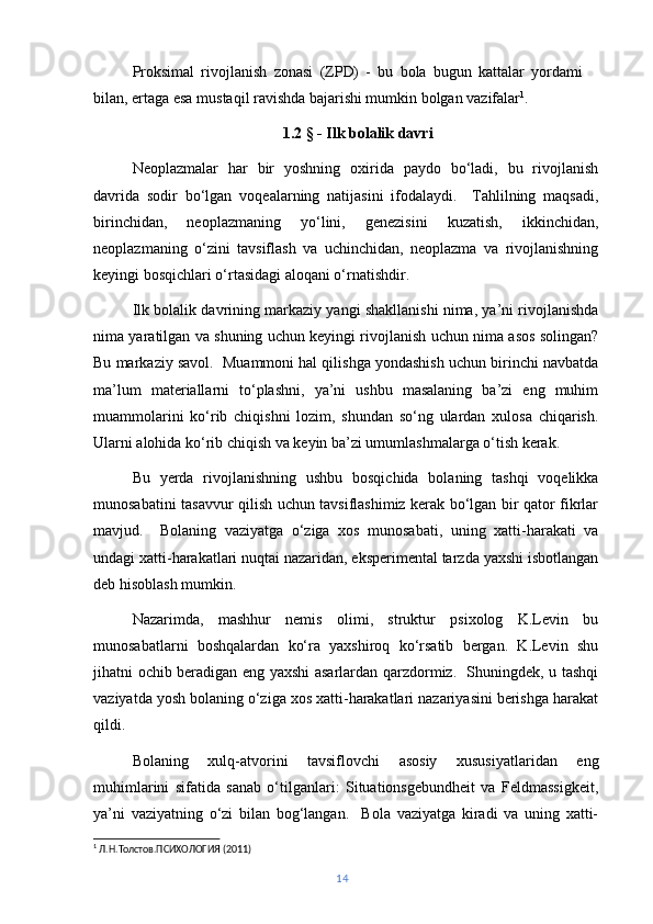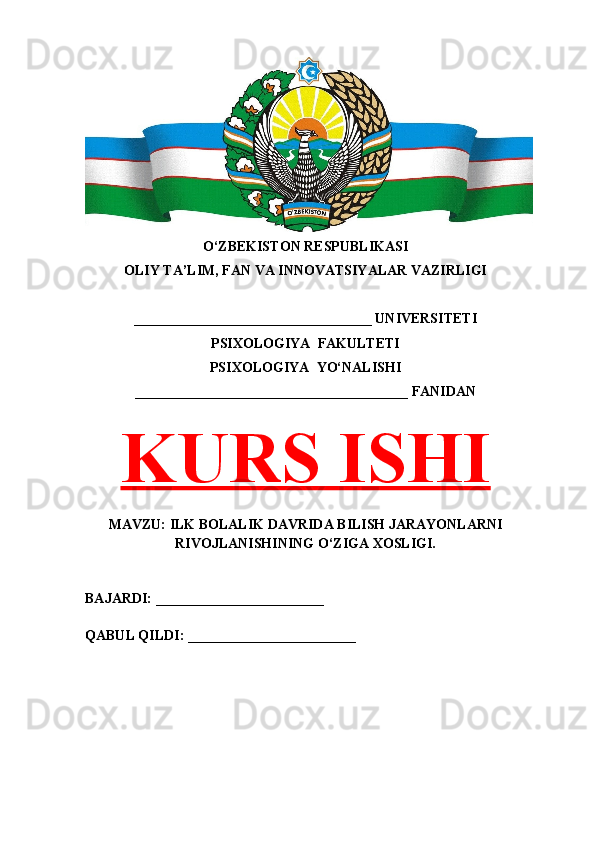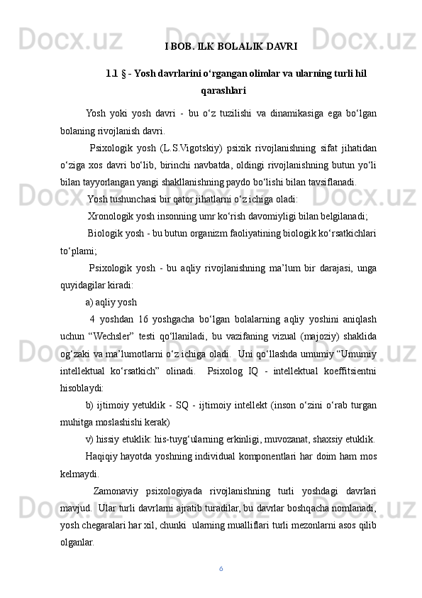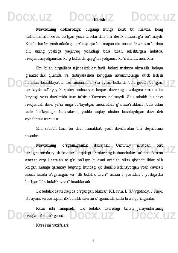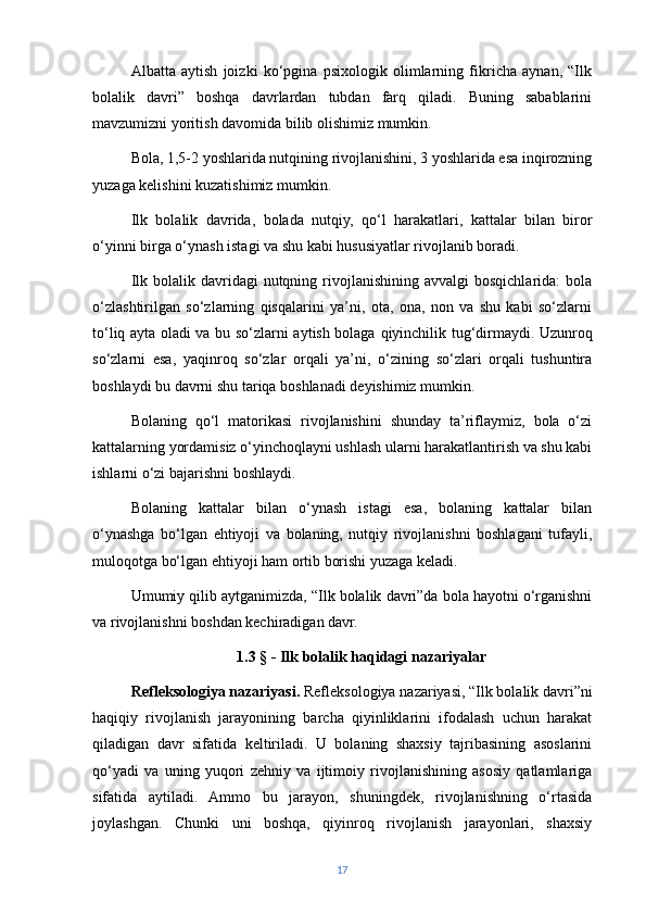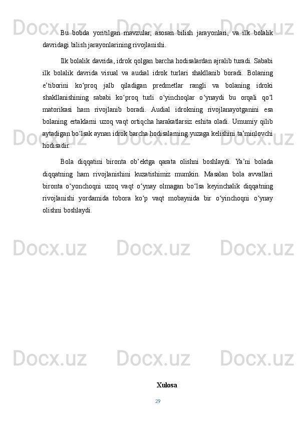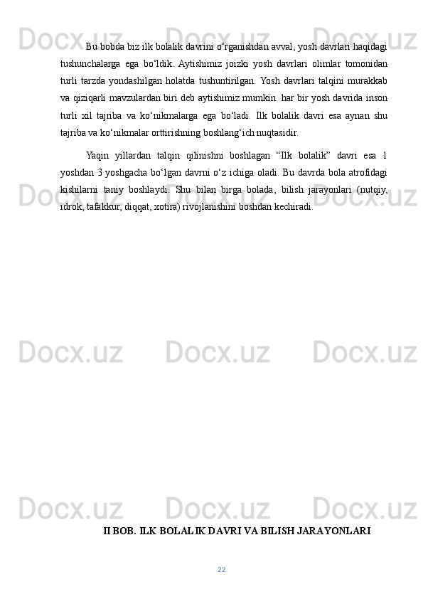 | ILK BOLALIK DAVRI VA BILISH JARAYONLARI……… | ||