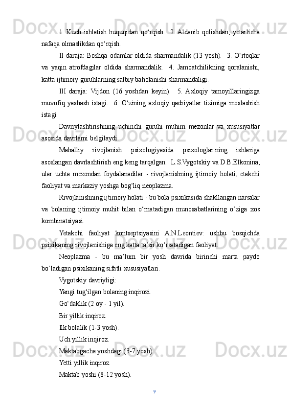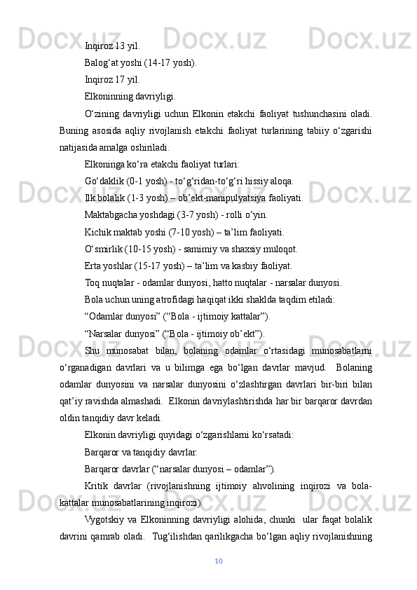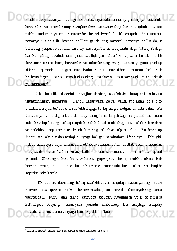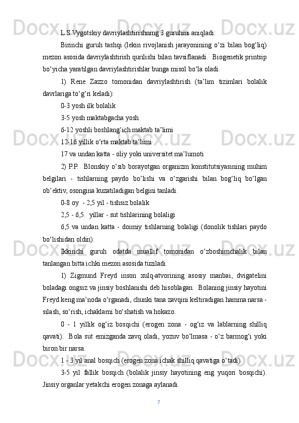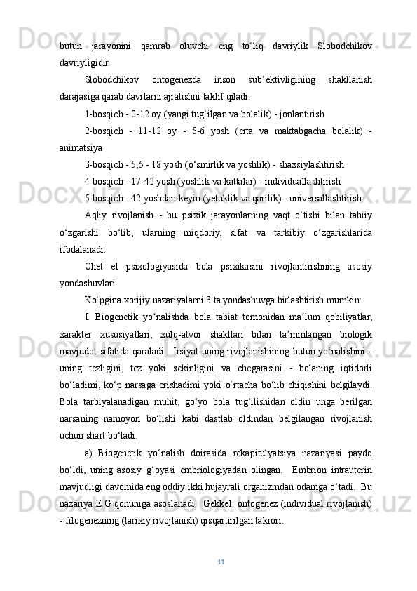 | Yosh davrlarini o‘rgangan olimlar va ularning turli hil qarashlari. | 5 | |