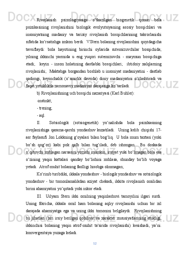 | Ilk bolalik davri………………………………………………….. | 13 | |