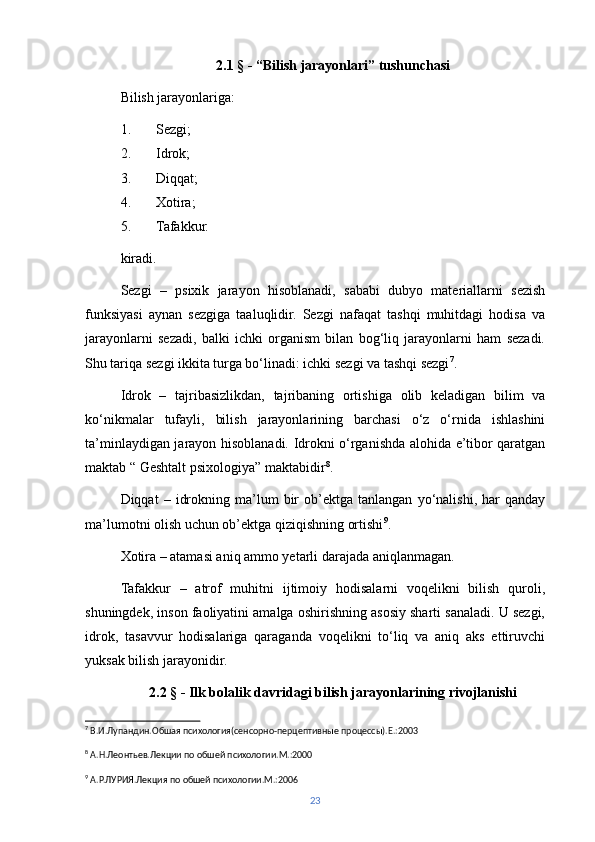 | “Bilish jarayonlari” tushunchasi……….……………………..….. | 22 | |
