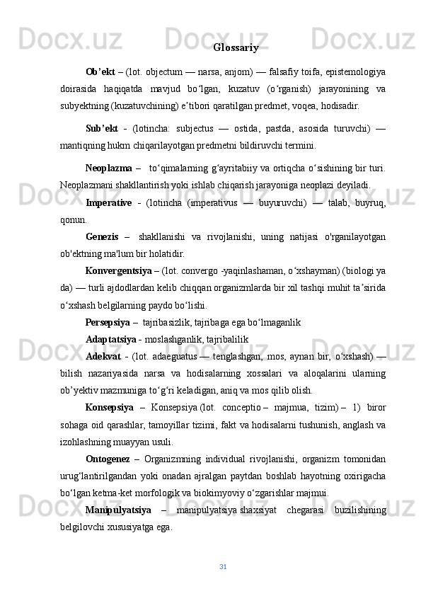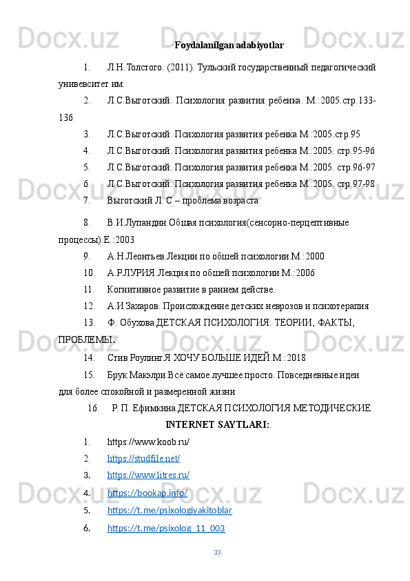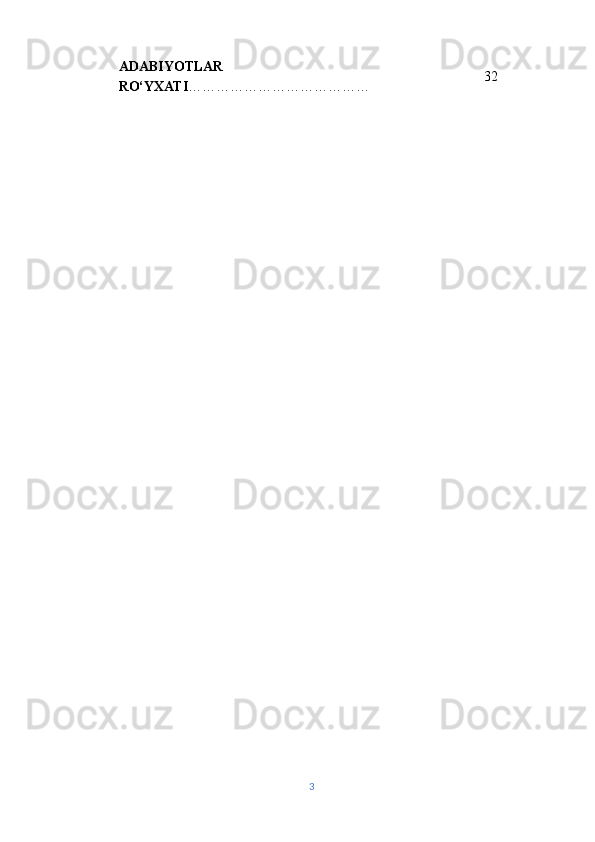 | ADABIYOTLAR RO‘YXATI………………………………… | 32 | |