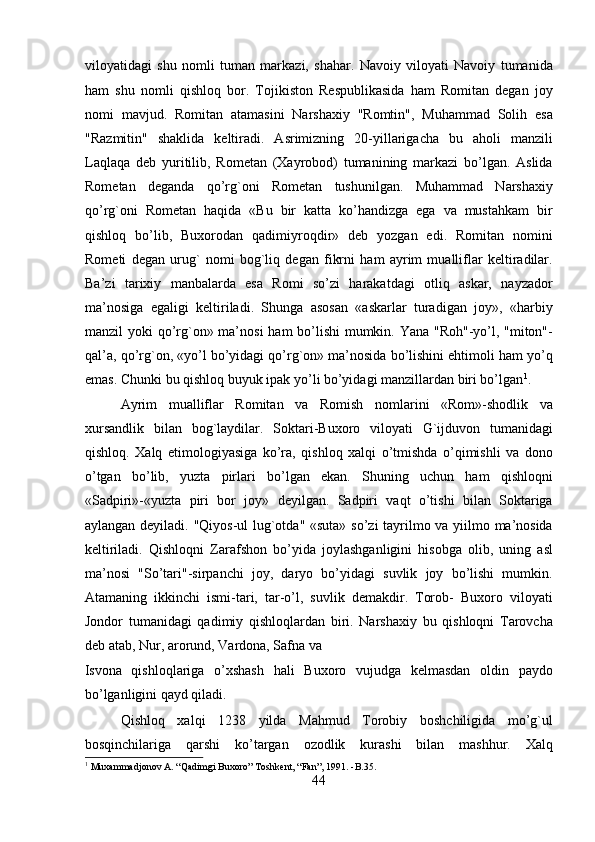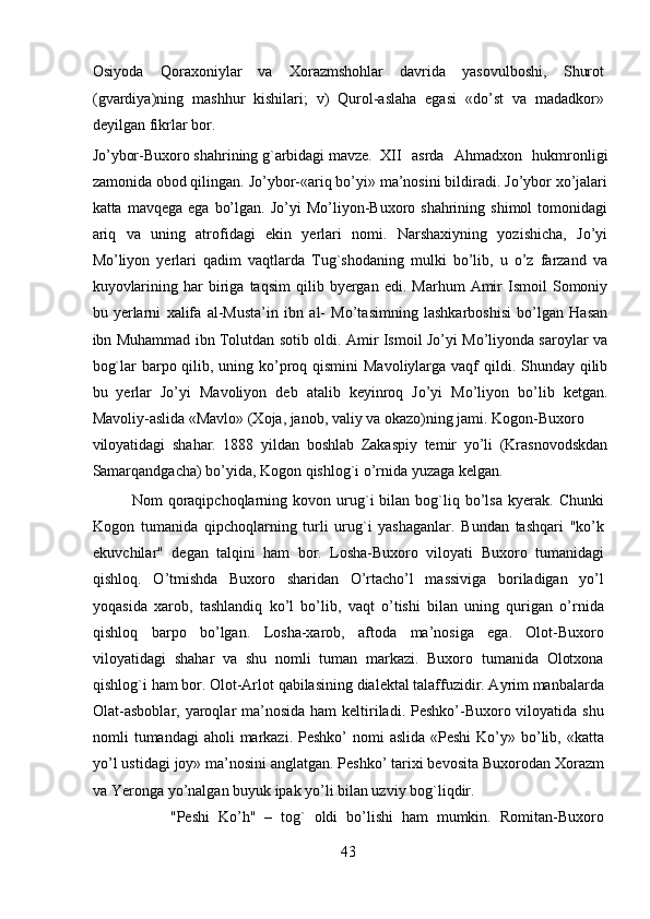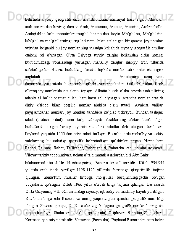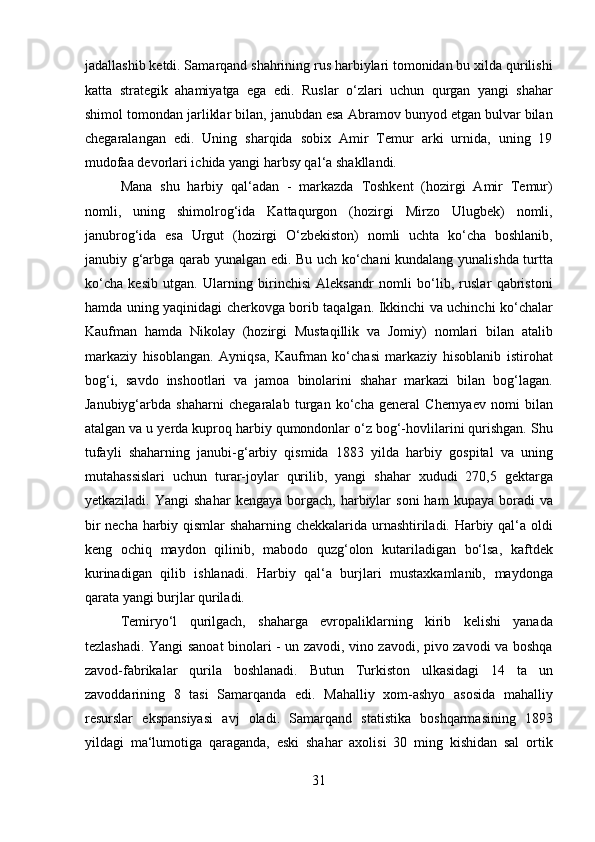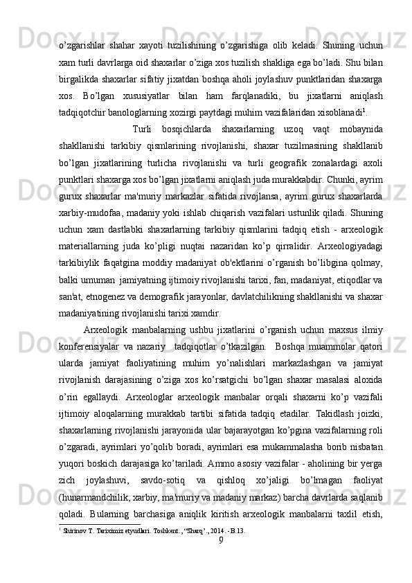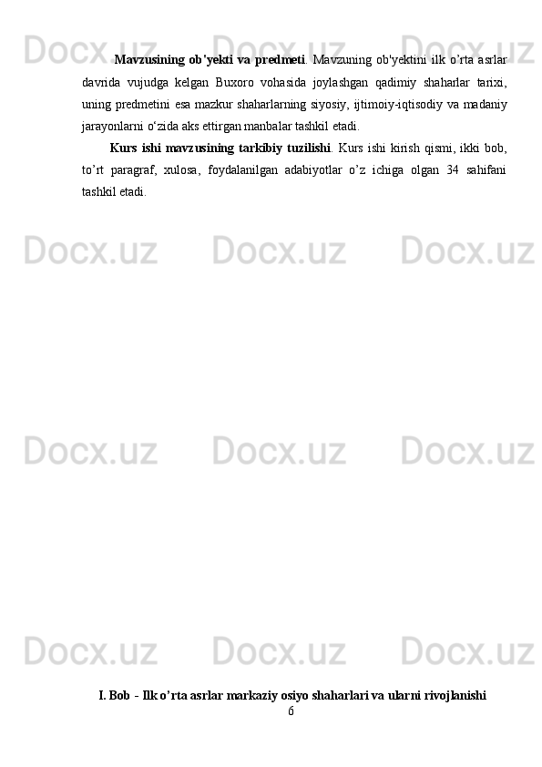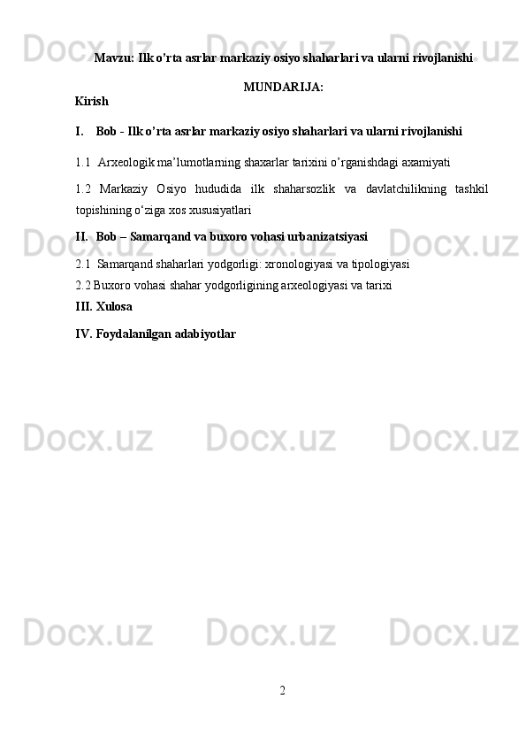 Ilk o’rta asrlar Markaziy Osiyo shaharlari