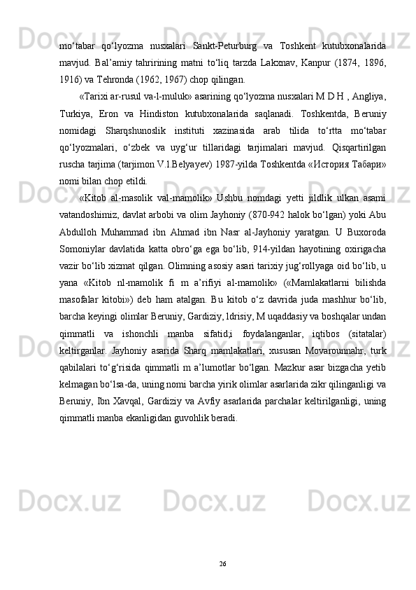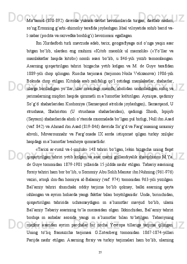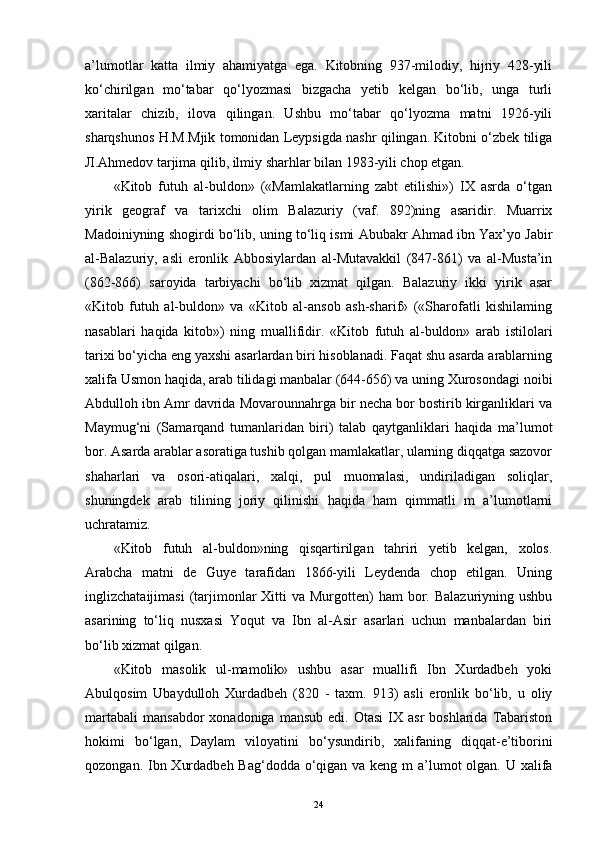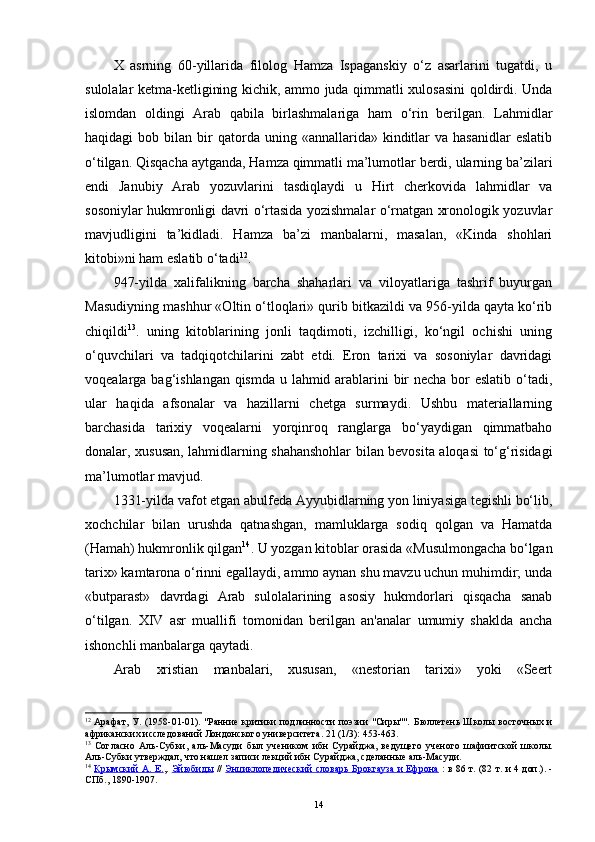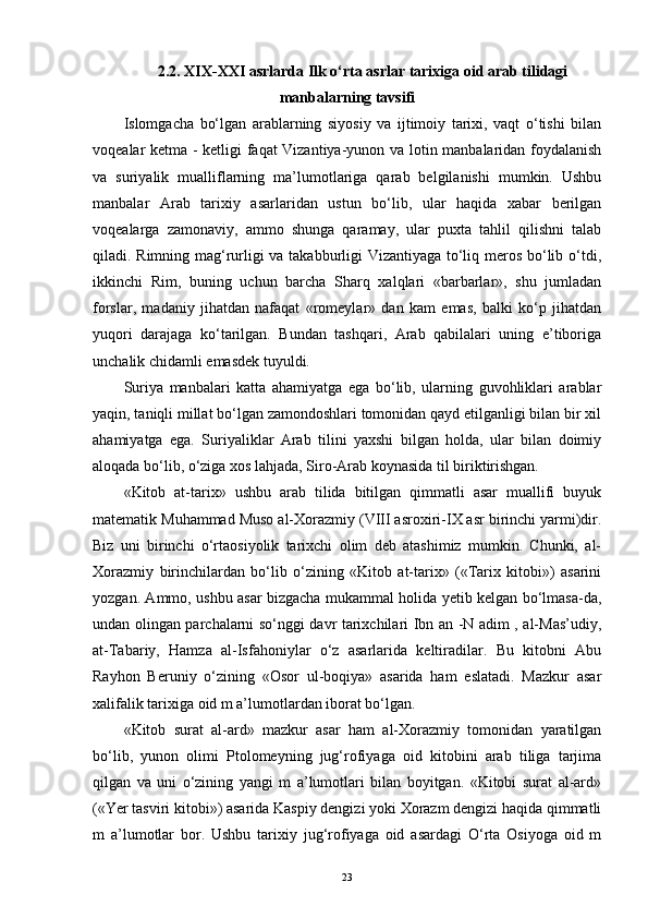 ilk o‘rta asrlar tarixiga oid arab tilidagi manbalarning o‘rganilishi tarixi (xix-xxi asrlar)