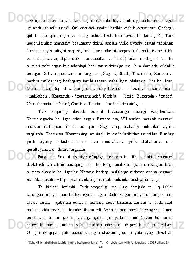 Ilk oʻrta asrlarda davlatchilik va boshqaruv