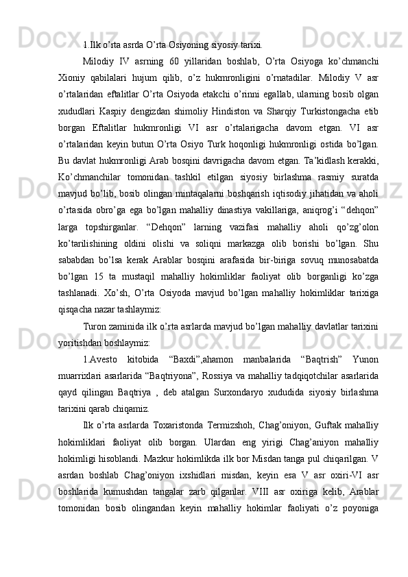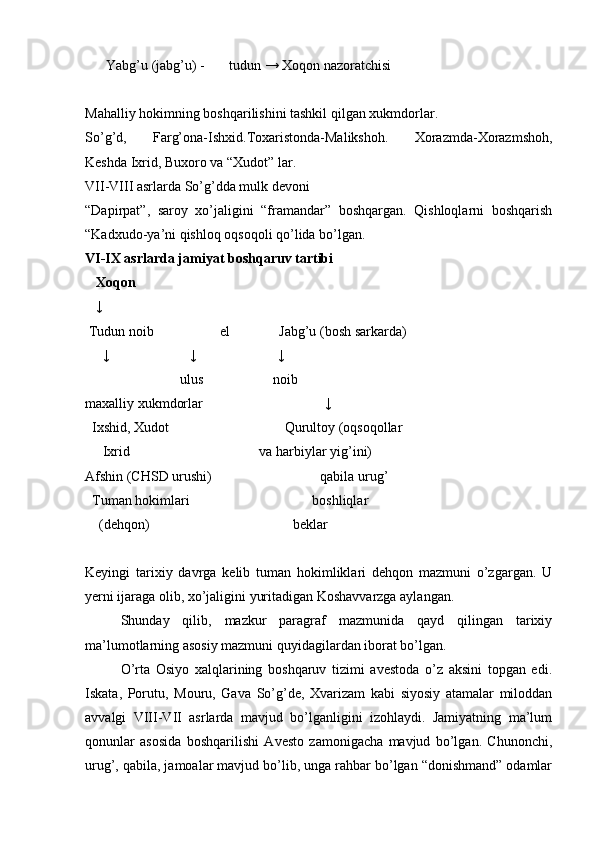 Ilk o’rta asrlarda O’rta Оsiyo davlatchilik an’analari va davlat bоshqaruvi tizimi