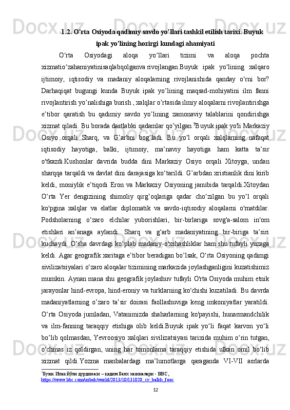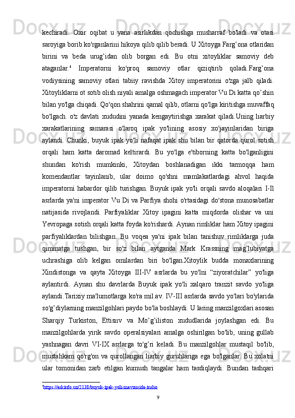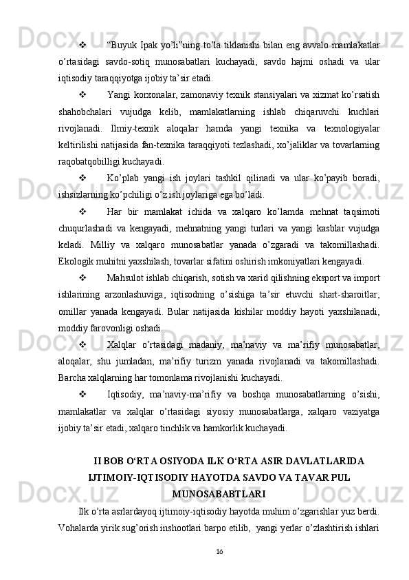 Ilk o’rta asrlarda savdo yo’llari va tashqi savdo sotiq tizimining rivojlanishi