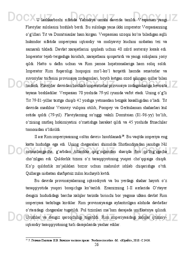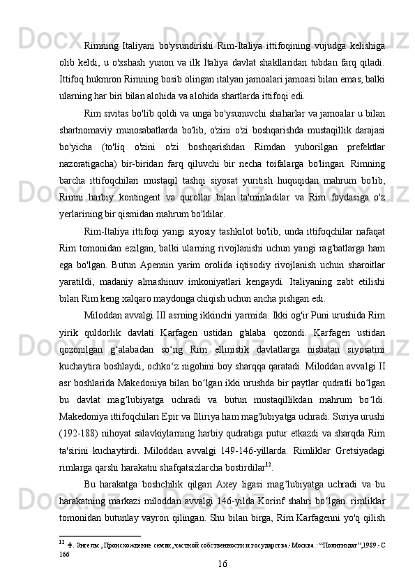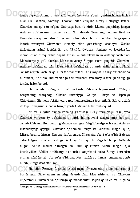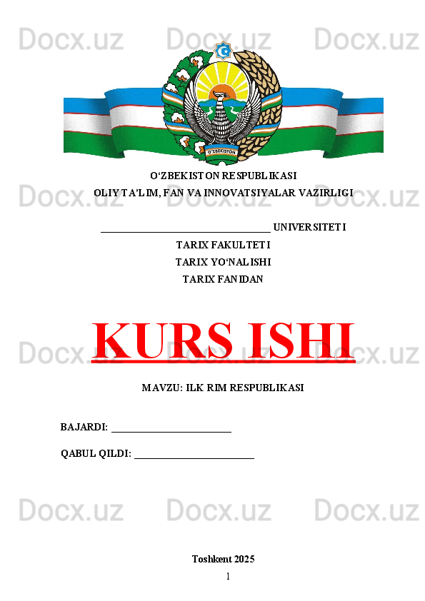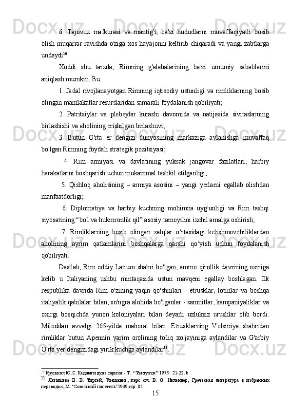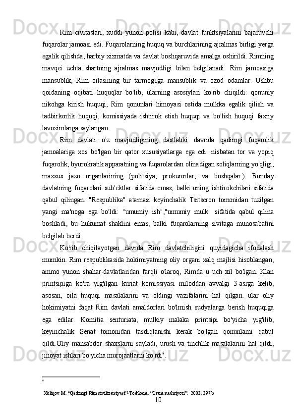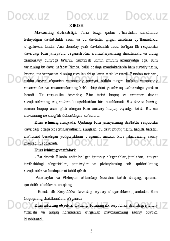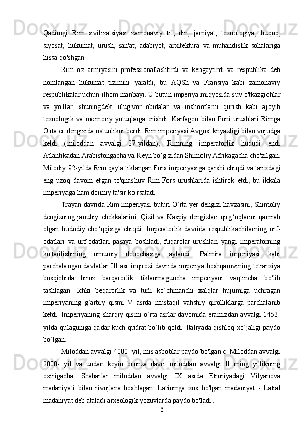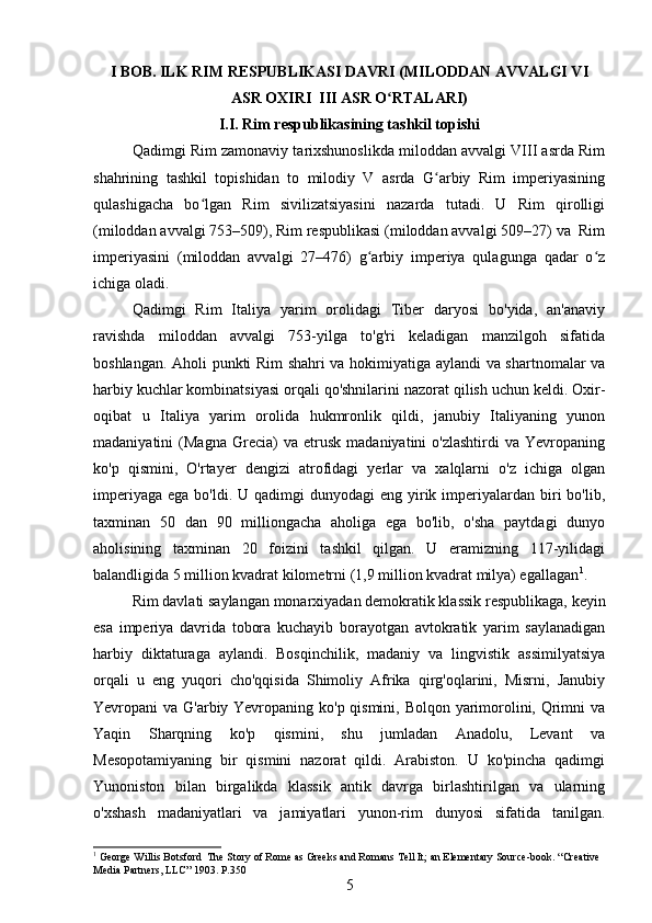 I BOB. ILK RIM RESPUBLIKASI DAVRI (MILODDAN AVVALGI VI ASR OXIRI III ASR OʻRTALARI)………………………................... 5