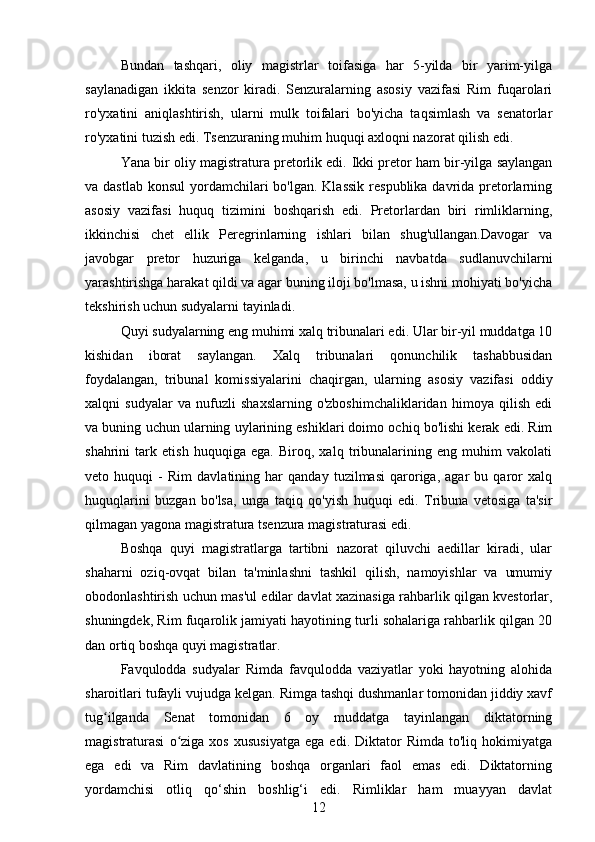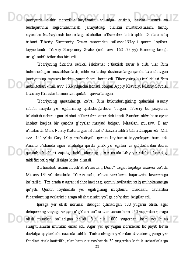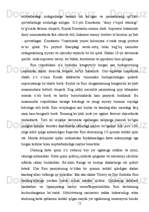 2.1. Rim respublikasining ijtimoiy-iqtisodiy hayoti ………………….. 24