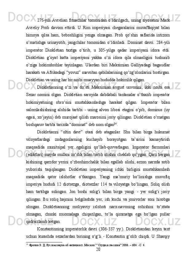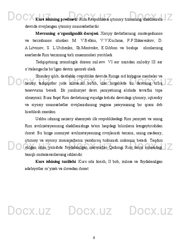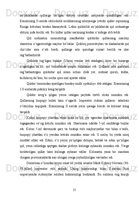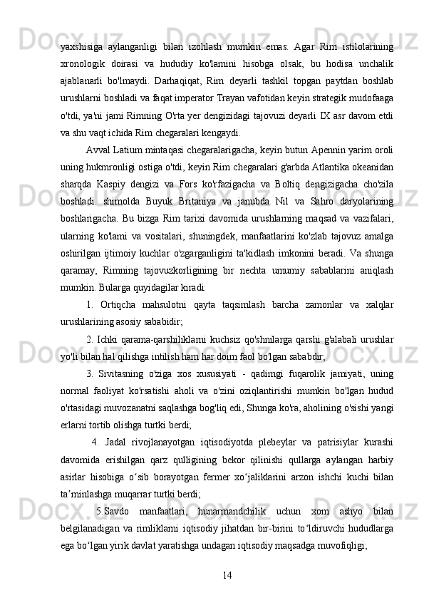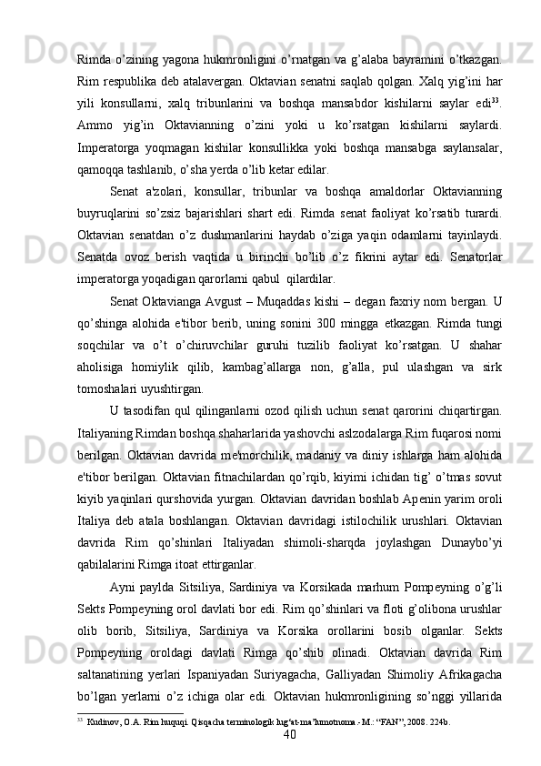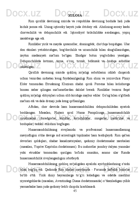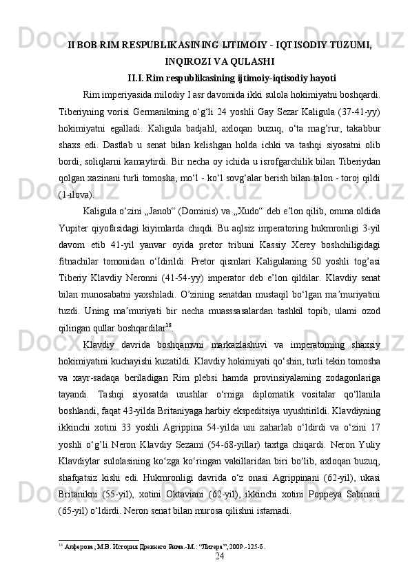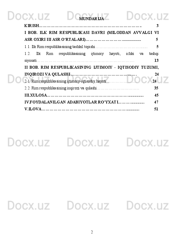 II BOB. RIM RESPUBLIKASINING IJTIMOIY - IQTISODIY TUZUMI, INQIROZI VA QULASHI …………………………………………. 24